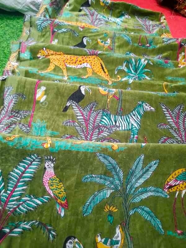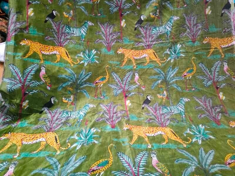 Indian Hand block Tiger Printed Soft Crushed Velvet Fabric Sewing Upholstery