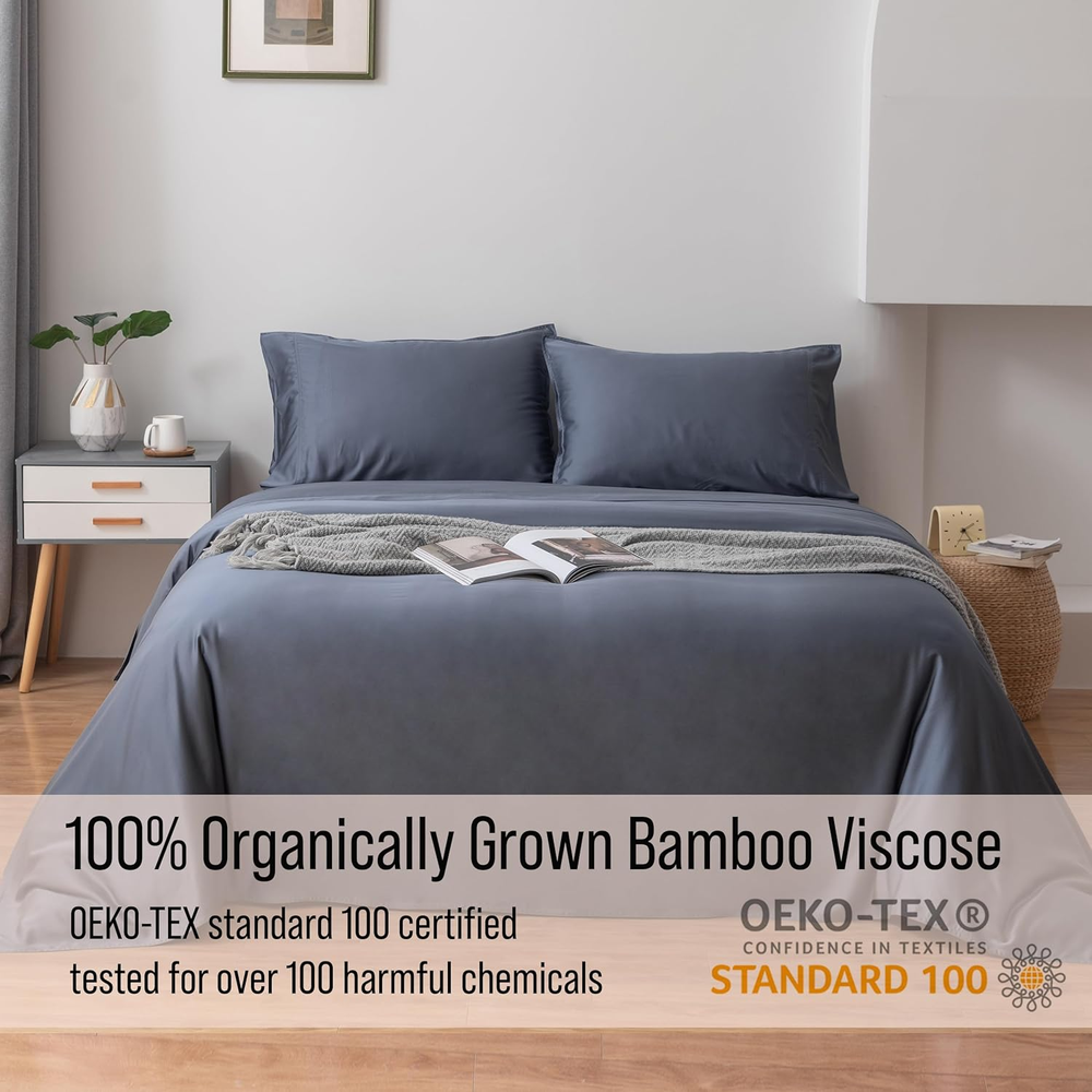 Store New Arrivals Add to Favorite View Feedback Contact Luxury Bamboo Split King Size Sheet Set | 100% Organically Grown Bamboo Viscose | Ultra Soft | Cooling for Hot Sleepers | 18" Deep Pocket [Slate Blue] Description Style Luxury Bedding Weave Type Sateen Pattern Solid Country of Origin China Theme Winter Number of Pieces 5 Unit Count 1.0 Count Pillowcase Quantity 2 Material Organically Grown | Viscose Made From Bamboo Item Display Dimensions 112 x 108 inches Age Range (Description) Adult Seasons Winter, Summer, Fall, Spring Package Dimensions 13.39 x 10.2 x 4.02 inches Closure Type Envelope Item Weight 7.11 pounds Occasion Everyday/Casual Fitted Sheet Pocket Depth 18 Inches Special Feature Cooling, 18" Extra Deep Pocket, Hypoallergenic, Sateen Weave, Moisture Wicking Color Slate Blue Thread Count 400 Pillowcase Closure Depth 2E+1 Inches Included Components 2 Pillowcases, 2- 18" Extra Deep Pocket Fitted Sheets, Flat Sheet Pillowcase Closure Width 38 Inches Product Care Instructions Machine Wash, Tumble Dry Size Split King RECHARGE YOUR SOUL- Embrace yourself in the luxury of 100% viscose made from bamboo sheets and you will wake up feeling renewed and refreshed. Lightweight and silky, hypoallergenic and moisture-wicking, these sheets keep you cool in summer and warm in winter. REDEFINE YOUR LIFESTYLE- With a 400 thread count, the superior quality of these 100% viscose derived from bamboo sheets are a dream to sleep on, getting softer with every wash. The 18" extra deep pocket fitted sheet will fit even the most plush pillow top mattresses. RENEW YOUR SLEEP - You can rest well in luxury bedding knowing that your sheets have been tested and certified to be free of over 100 harmful chemicals with the OEKO-TEX 100 certification. REINVIGORATE YOUR RELATIONSHIP - Enhance every part of your relationship as you cozy up with your loved one and enjoy the silky, soft, woven bliss of 100% viscose made from bamboo. ADD TO CART WITH CONFIDENCE in our 100% Customer Satisfaction Guarantee! Product Description Slip Into Luxurious Comfort With 100% Bamboo Viscose Bedding The video showcases the product in use. The video guides you through product setup. The video compares multiple products. The video shows the product being unpacked. How should I care for my Bella Coterie sheets to maintain their quality and durability? Simply wash and dry. Bella Coterie bamboo sheets are designed with durability in mind to resist fading and pilling. Are Bella Coterie sheets designed for a secure fit? From deep pockets that ensure a perfect fit, to non-slip straps that keep everything in place - Bella Coterie sheets are thoughtfully crafted for comfort and function. Are these sheets made from sustainable materials? Our 100% organically grown bamboo viscose sheets are OEKO-TEX Standard 100 certified, meaning every component has been tested for over 100 harmful chemicals. Rest easy knowing you're wrapped in sheets that are free from toxins and pesticides. Why choose Bella Coterie bamboo viscose sheets over cotton or synthetic? Bamboo is naturally cooling to reduce night sweats, hypoallergenic for sensitive skin, and is moisture wicking to keep your sheets dry and free of allergens.. Are Bella Coterie Sheets soft to the touch and breathable? Say goodbye to rough and scratchy sheets! Organically grown bamboo viscose offers unparalleled silky softness without synthetic fibers that can irritate skin. Experience cooling comfort - naturally breathable for temperature control. Bella Coterie Luxury Bedding Add to Cart Add to Cart Add to Cart Customer Reviews 4.4 out of 5 stars 3,685 4.3 out of 5 stars 97 4.5 out of 5 stars 422 4.5 out of 5 stars 287 Price $129.99 $ 129 . 99 $129.99 $ 129 . 99 $29.74 $ 29 . 74 — Material 100% Viscose from Bamboo 100% Viscose from Bamboo 100% Viscose from Bamboo 100% Pure 6A Mulberry Silk Secure Fit 18" Extra Deep Pockets 8 Corner Ties & Button Closure Envelope Sham Zipper Closure Fabric Feel Silky Smooth & Cool to Touch Silky Smooth & Cool to Touch Silky Smooth & Cool to Touch Ultra Soft & Breathable Temperature Regulating Breathable & Cooling Breathable & Cooling Breathable & Cooling Cozy & Cool Designer Color Collection 16+ Colors Available 14+ Colors Available 16+ Colors Available 10+ Colors Available Machine Washable ✔ ✔ ✔ ✔ Anti-Pilling / Anti-Fading ✔ ✔ ✔ ✔ OEKO TEX Certified ✔ ✔ ✔ ✘ ABOUT US We offer the best prices around on high quality products. Our E-store includes media such as books, movies, music and games while offering electronics, toys, sporting apparel, clothing, tools, general home, garden items and more. SHIPPING We are always working hard to ensure your package arrives as soon as possible. Please understand that some factors like weather, high postal traffic, and the performance of shipping companies are outside of our control. We offer free shipping to the lower 48 states and ship within 2 business days of payment, usually sooner. We do not accept P.O. Boxes. Please provide a physical address. For shipping outside of the continental USA, we only use eBay's Global Shipping Program.The item is shipped to KY and then sent to the rest of the world. International customers are responsible for all duties and taxes. Continue to check out in order to calculate costs for shipping the item to your country. Messages regarding eBay's Global Shipping Program MUST be directed at eBay EXCLUSIVELY. RETURNS We offer a 30-Day Return Policy on items which you are not completely satisfied with. You have the option for a full-refund or an exchange of the item. No returns are available on items shipped outside of the USA. PAYMENT We accept PayPal. CONTACT US This page content is yet to come Please ad us to your favorite seller and visit again later Thank You CUSTOMER SATISFACTION We try our very best to make sure every customer is completely satisfied. If there's a problem, message us! We're happy to help.