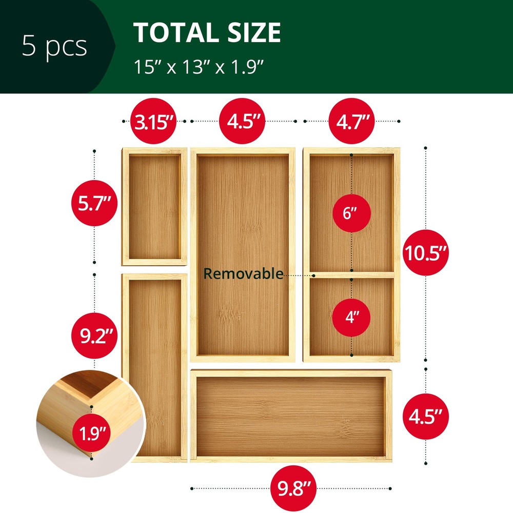 Premium Tea Bag Organizer: Elevate your tea experience with our elegant tea bag organizer. Perfect for tea bag storage, this tea holder organizer keeps your favorite teas neatly displayed and easily accessible. Perfectly Sized Tea Bag Organizer: Convenient for kitchen organization, our tea bag organizer fits a variety of spaces with dimensions of 9.8 x 4.5”, 10.5 x 4.7”, 10.5 x 4.5”, 9.2 x 3.15”, and 5.7 x 3.15”. Rearrange each compartment to suit your needs, giving your home a distinct and personalized touch. Versatile Tea Box Storage: Our tea box organizer provides ample storage for all your tea bags. With multiple compartments, it's the ideal tea storage solution for your kitchen or countertop. Stylish Tea Chest: Enhance your kitchen decor with our beautifully crafted wooden tea box. This tea chest is designed to be both functional and aesthetically pleasing, making it a great addition to any home. Compact Tea Bag Holder: Save space on your countertop with our compact tea bag holder. This tea bag organizer for counters is perfect for keeping your tea bags organized and within reach. Tea Organizer for Tea Bags: Our tea organizer is specifically designed for tea bags, offering a dedicated space to and display your collection. Perfect for tea enthusiasts who value organization and style. Durable Tea Storage Box: Made from high-quality , our tea storage box is built to last. It's a sturdy and reliable tea bag storage organizer that keeps your tea fresh and easily accessible. Multi-Functional Tea Holder: Use our tea holder in various ways to suit your needs. Whether you need a tea organizer for your kitchen, office, or bathroom, this versatile storage box has you covered. Elegant Tea Drawer Organizer: Keep your tea bags neatly organized with our tea drawer organizer. Designed to fit perfectly in your kitchen drawer, it helps you maintain a clutter-free space. Practical Tea Storage Organizer: This tea bag storage organizer is designed for convenience and style. With its multiple compartments, it's the perfect tea box organizer for keeping your tea collection tidy and accessible.