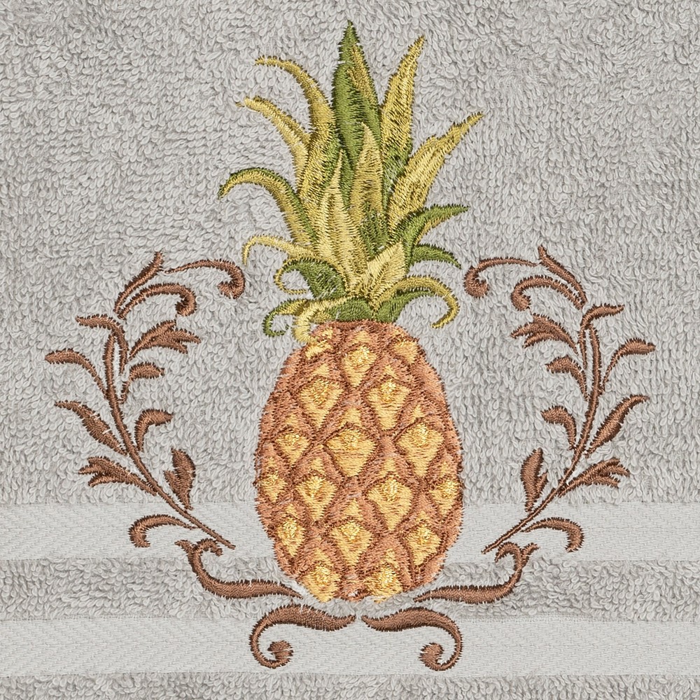 Welcome guests to your home with this traditional pineapple-embroidered hand towel. Crafted from rich, soft Turkish cotton, this machine-washable hand towel comes in elegant light grey, and it's manufactured in a solar-powered green factory so you can feel good about using them. Place this towel in your powder room for an elegant finishing touch.Includes: One (1) hand towel100-percent soft and absorbent Turkish cottonEmbellished with an embroidered designThis luxurious towel is produced in a state of the art green factory in Turkey which runs on 100-percent solar energyCare instructions: Machine wash and dryMade in TurkeyDimensions: Hand towel - 16 inches wide x 30 inches long Free Shipping Over $49.99* Details Authentic Hotel and Spa Turkish Cotton Pineapple Embroidered Light Grey Hand Product Description: Welcome guests to your home with this traditional pineapple-embroidered hand towel. Crafted from rich, soft Turkish cotton, this machine-washable hand towel comes in elegant light grey, and it's manufactured in a solar-powered green factory so you can feel good about using them. Place this towel in your powder room for an elegant finishing touch. IncludesOne (1) hand towel 100-percent soft and absorbent Turkish cotton Embellished with an embroidered design This luxurious towel is produced in a state of the art green factory in Turkey which runs on 100-percent solar energy Care instructionsMachine wash and dry Made in Turkey DimensionsHand towel - 16 inches wide x 30 inches long