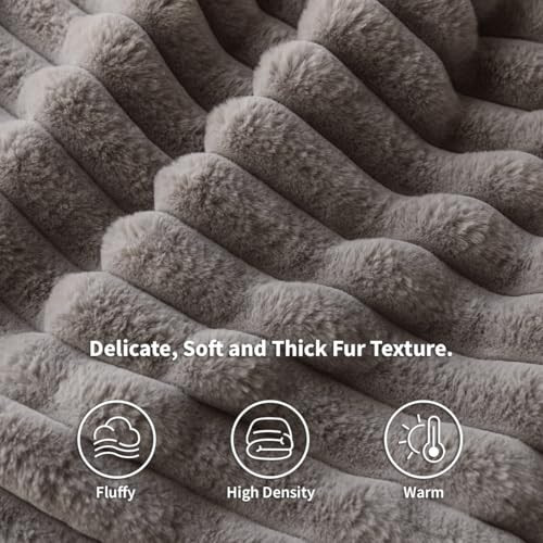 Luxury Ultra Soft Fluffy Faux Fur Winter Throw Blanket with Stripes