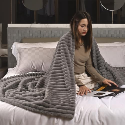 1. This faux fur throw is unbelievably soft and cozy—perfect for snuggling on the couch or adding a touch of luxury to your bed. The thick, plush material keeps you warm without being heavy, and the elegant grey stripe design looks stylish in any room. It’s surprisingly realistic, almost like genuine fur, and the generous size makes it great for sharing. Fast shipping and great customer service make this a fantastic buy!