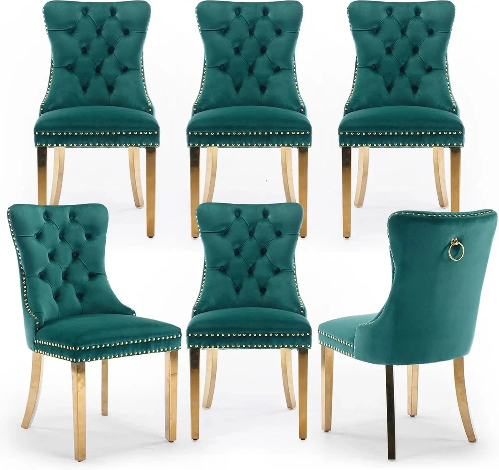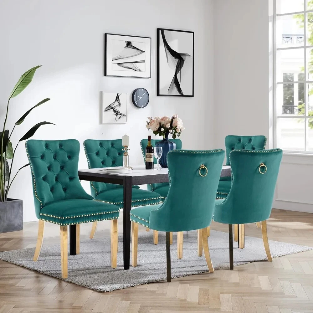 Product Description About this item 【Mid-Century Dining Chairs】: Our dining chairs feature a fusion of modern and mid-century styles. Made of high-quality fabric, our fabric is thicker and more durable. The cushion and backrest of the dining chair are made of highly padded elastic sponge, which is of high quality and durable. 【Multiple Fabrics】: The backrest of the dining chair is designed with a curved high backrest, the front of the backrest has delicate tufted buttons and the back has added smooth pull ring. Our dining chairs are offered in velvet, with PU and velvet patchwork, as well as linen fabrics to meet your multiple needs. 【Detailed Leg Design】: Our kitchen side chairs have curved back legs and individually adjustable pads on the front legs to make the chairs easier to stabilize. Dining chairs are available in three leg materials-wooden legs, gold-plated legs, and silver-plated legs. Match perfectly with different materials and color fabrics to make unique design dining chairs. 【About Dining Chair Set】: Dining chair size: 19.7 "L x 24.4" W x 37.5 "H, Maximum weight capacity: 280 lbs. Each box contains 2 dining chairs and matching mounting accessories.