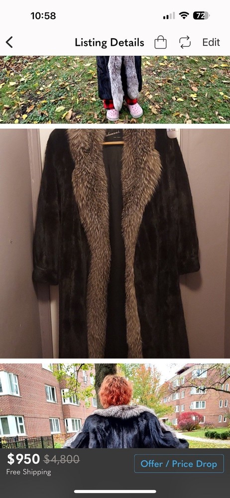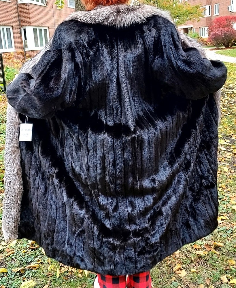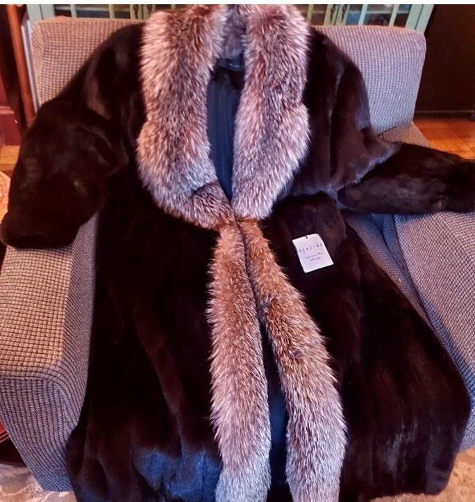 This vintage full-length mink coat with crystal fox tuxedo collar and lapels is a luxurious and stylish piece perfect for formal, casual, business, and/or festive occasions. Custom made for the owner by Abramson Furriers, the coat has been professionally maintained over the years. It is being sold as the owner now resides in a tropical climate and can no longer use it. Measurements are: 47” collar to hem 24” underarm to underarm 18” shoulder to shoulder 25” sleeve top of shoulder to cuff The lining is pristine, the pockets are lined in velvet, and the coat has a very large sweep.