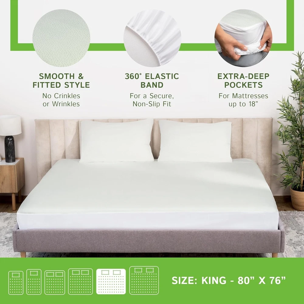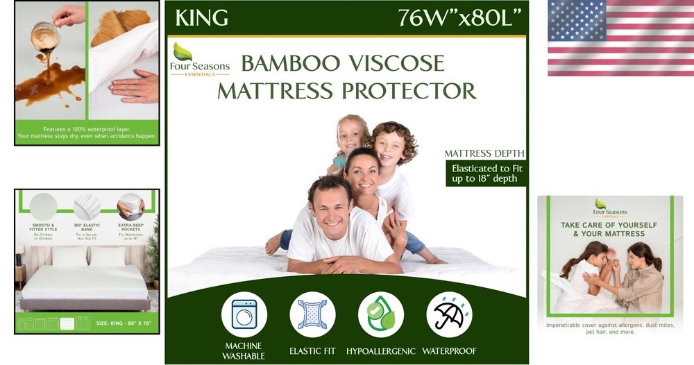 Luxury Waterproof King Size Mattress Cover - Cooling Viscose & Allergen Relief ‹ › ‹ › ‹ › ‹ › ‹ › ‹ › ‹ › ‹ › ‹ › Luxury Waterproof King Size Mattress Cover - Cooling Viscose & Allergen Relief - Composition: 55% Polyester, 45% Viscose Derived from Bamboo - Imported Features: Made with cooling viscose derived from bamboo to provide an ultra-soft and luxurious feel. Fitted sheet style design with elastic all around, fitting any mattress thickness up to 18 inches. Ultra soft quilted jacquard pad with 3D airflow for breathability while remaining 100% waterproof. 100% waterproof protection with an inner polyurethane lining that blocks liquids and moisture. Impenetrable cover shields against allergens, dust, and pet hair for a healthier sleep environment. Comfortably stretchable and noiseless for an undisturbed night’s sleep. Durable, machine washable for easy cleaning and long-lasting protection. Benefits: Maintains a dry and protected mattress, even in the presence of spills and accidents. Provides allergen relief, promoting healthier and easier breathing during sleep. Designed for optimum comfort - soft, breathable, and noiseless to ensure a restful night. Strong enough for daily use while being easy to clean and maintain. Why choose our Luxury Waterproof Mattress Cover? Experience the ultimate in sleep comfort and protection with our Luxury Waterproof King Size Mattress Cover. Crafted from viscose derived from bamboo, this beautifully designed cover not only ensures your mattress stays dry and safe from spills and accidents but also creates a sanctuary free from allergens. With its stretchable, breathable fabric, you can sleep soundly without worrying about crinkles or discomfort. Transform your sleep space into a luxurious retreat - protect your mattress and enhance your well-being with our waterproof mattress cover. Order yours today and enjoy a cleaner, healthier night's sleep! Shipping Free & Fast Shipping - We offer free shipping to most of the USA with a normal delivery time of 3-7 days. However, due to the current situation, additional delivery time (up to 3 weeks) may be required for some items. Alternative Carriers - We may use alternative carriers (e.g. USPS, FedEx, UPS, etc.) to ensure your package arrives safely and on time. Due to the use of multiple carriers, we are unable to provide a tracking number automatically. Handling Time - Orders are processed and shipped within 1-2 business days of receiving cleared payment. Shipping Restrictions - Shipping to Alaska, Hawaii, Puerto Rico, Guam, and other US territories may incur shipping charges or delivery restrictions. Please contact us before ordering, or your order can be refunded/cancelled. State Restrictions - There may be restrictions based on your state of purchase. For example, certain items may not be shipped to California due to state regulations. Contact for Tracking Updates - If you require tracking updates or have any concerns about the delivery of your order, please feel free to contact us, and we will be happy to assist you. Return 30-Day Hassle-Free Returns - We want you to be completely satisfied with your purchase. If you are not, you can return the item within 30 days of receiving it for a full refund or exchange. Easy Return Process - To start a return, simply contact us and we will provide you with a prepaid return shipping label and detailed instructions. Restocking Fee - There are no restocking fees for returns. However, the buyer is responsible for return shipping costs if the return is not due to a seller's error. Refund Processing Time - Refunds will be processed within 5 business days of receiving the returned item in its condition. Payment We accept all major credit cards, PayPal, and Apple Pay for your convenience. Your payment information is secure and encrypted to ensure a safe and seamless transaction. Please complete your payment within 3 days of purchase to avoid any delays in shipping. Feedback Your feedback is extremely important to us. We strive to provide the best products and customer service possible. If you are satisfied with your purchase, please take a moment to leave us a positive review. If you have any concerns or issues with your order, please contact us before leaving negative feedback. We are committed to resolving any problems and ensuring your satisfaction. Contact Us If you have any questions or concerns, please feel free to out to our customer support team. You can contact us through the eBay messaging system. We are available Monday to Friday, 9:00 am to 5:00 pm EST, and we will do our best to respond to your inquiry within 24 hours. Buy it now and enjoy a pleasant shopping experience! Item Length: Mattress Protector Item Width: Mattress Protector Unit Quantity: 2.5 Material: Polyester,Viscose Features: Cooling,Waterproof,Deep Pocket,Tear-Resistant,Breathable Care Instructions: Machine Wash Theme: Luxury Department: Adults Room: Bedroom Size: King Type: Mattress Protector Fill Material: 100% Polyester Closure Type: Pull On Color: Natural Viscose Insulation: Cool Style: Modern Shape: Rectangular Thread Count: 300 GSM (Grams per Square Meter): 301 to 450 Unit Type: lb