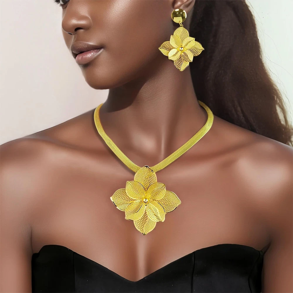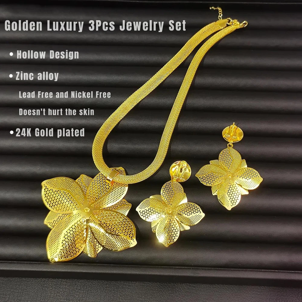 Luxury Women's Golden Big Hollow Flower Jewelry Sets Gold Plated Floral Filigree 3pcs Drop Dangle Leverback Earrings Necklace Trendy Design Party Cocktail Prom Mothers Day Outfits Accessories Gifts Product Details Style: SET-A Brand: Dikixe MPN: Does not apply UPC: Does not apply EAN: Does not apply Department : womens Date First Available : July 24, 2024 Brand, Seller, or Collection Name: Dikixe Metal stamp: 24k Metal: yellow-gold-plated-alloy Material: Metal, Yellow Gold Gem Type: No Gemstone Chain: Rope Clasp: Lobster Clasp