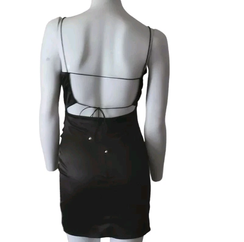 This beautiful wrap dress has a little bit of stretch. It looks like silk. It has a lace-up tie back. Asymmetrical hem with ruching at waist. Lined. Back zipper. "Please see the photos, which is a huge part of the description Adjustable straps. About 30" Length 17" across the chest In good preowned condition The red dress is used for reference only. Welcome ( TO MY LISTING ) We Strive for Excellence and our #1 Goal is to make our Customers Happy! Please Remember all Clothing Items may fit differently depending on Brand, Fit, Use or Prior customization. We strongly urge our customer's to check measurements or ask for measurements first to guarantee proper fitting. Shipping discounts will be provided for multiple purchases - Please Contact me after Multiple Purchases for a updated invoice. * Payment* Payment is expected as with eBay's policiy. If there is no prior arrangement to extend payment expectancy a nonpayment claim will be filed with EBay. *Returns* Returns are accepted for all items within the U.S.A ( No Returns for International Customer's ) unless otherwise noted in the listing. All items returned must be in original condition and may not have any additional flaws. If an item was sold "New with Tags" it must have all tags present. Please "SEE MEASUREMENTS" first to ensure proper fitting of garment. *Shipping* We ship the majority of our Products within 3 business day. We do not ship over the weekend. We will send you an updated invoice for purchasing multiple items at once from us. We ship our clothing items USPS Advantage Mail or Priority Mail. Tracking information will be provided with all purchases within the United States of America. We hold the right to refuse shipment to particular countries or buyers.