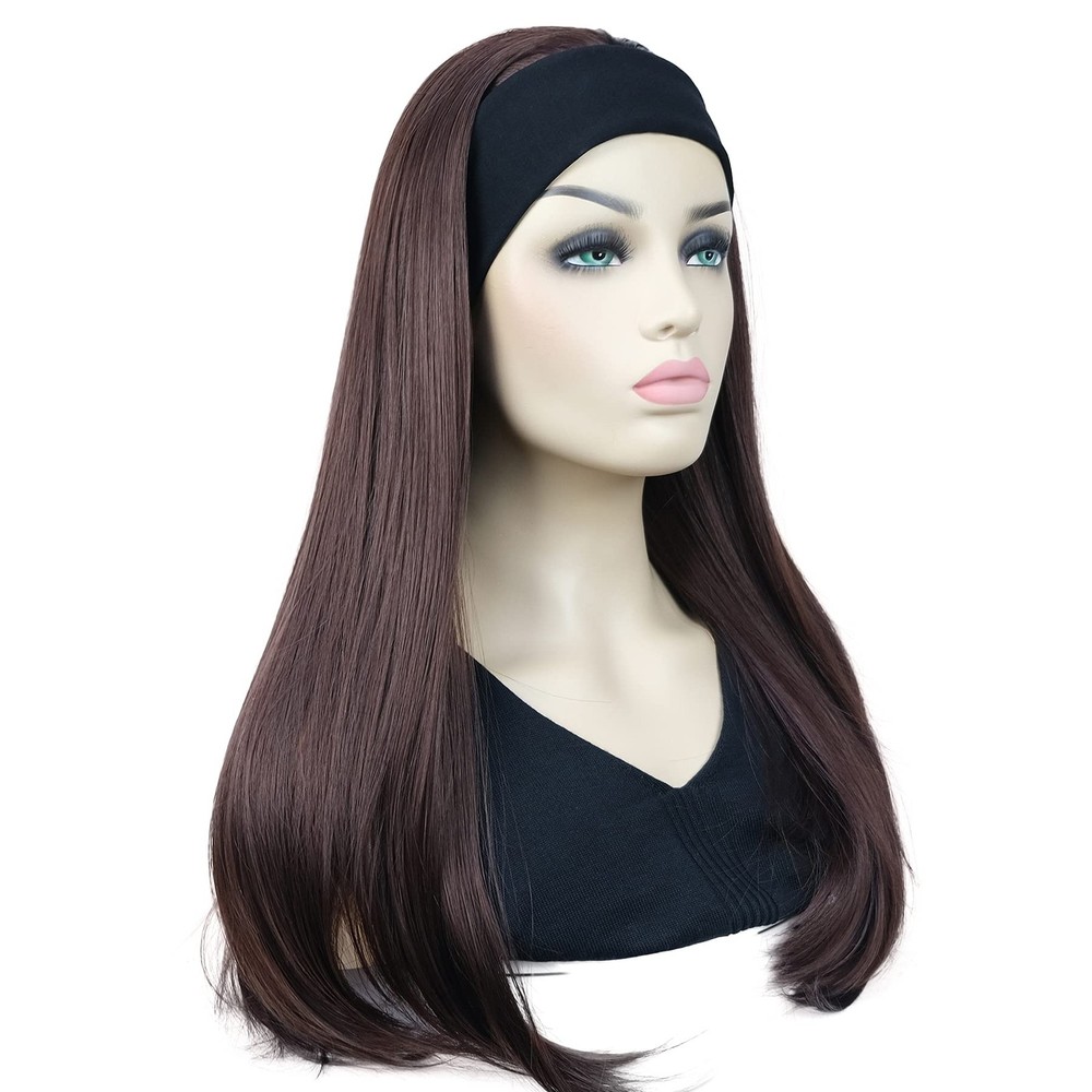 Great Wig, Straight Hair with Adjustable Black Headband, Very Cute. Material: Premium 100% Synthetic Fiber, Touch similar to real hair Soft touch, Natural looking, Breathability and Comfortable Length: about 24" Weight: 310g (10.9 oz) Style: Long Straight 3/4 Women Wig with Headband Brand: Brand New with tags Cap Size: Average 22" - 22.75" head circumference Classic Cap with Adjustable Staps in Back Washing Method: 1. Wash in cold or warm water 2. Add a dash of Shampoo and wash gently 3. Rinse thoroughly in cold water 4. Do not brush when wet allow wig to drip dry 5. Brush wig into desired style after it is completely dry Curls will snap back into position when the hairpiece is completely dry 6. Comb or brush with products used for Synthetic Warm Tips: 1. Due to the long-term squeeze storage, you may need to shake and comb it when you style your wig. It will show the same effect as pictures. 2. There could be some slight differences between the color tone of the photo and the actual item due to the effect of light and the different monitor's brightness. Material Grade: Heat Resistant Fiber, Length: 24 inches, Weight: 300g (10.6 oz) Style: Elastic Headband Wigs. Fits most head sizes, 3/4 wig with a headband Natural Feeling and Movement to hair. There is a lightest netting cap which is able to adjust most people`s head size and also can have fully ventilation for daily wear. Super Easy and Stylish Long Headband Wig. Long Layers of Very Soft Bouncy Curls. Cap has Front and Back Combs for a secure Fit.