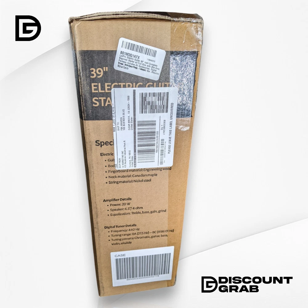 LyxPro 39" CS Series Electric Guitar Kit in Black (LYXEGBK0030B). Product Description LyxPro 39" CS Series Electric Guitar Kit in Black (LYXEGBK0030B). This guitar kit is new and sealed in the original box. See photos. Key Features: Complete Guitar Kit: Includes a full-size electric guitar, amplifier, cable, picks, strap, and digital tuner. 39-Inch Full-Size Guitar: Ideal for beginners, intermediate players, and aspiring musicians. Sleek & Stylish Black Finish: Classic design with a glossy black body and smooth maple neck. Performance & Sound: Three Single-Coil Pickups: Delivers versatile tones for rock, blues, jazz, and more. 5-Way Pickup Selector Switch: Offers multiple sound variations for different playing styles. Premium Strings & Adjustable Bridge: Ensures smooth playability and perfect tuning stability. Convenience & Accessories: 10-Watt Guitar Amplifier: Compact and portable, perfect for practice sessions. Digital Clip-On Tuner: Helps maintain accurate tuning for consistent sound quality. Comfortable Playability: Lightweight design with a contoured body for easy handling. Product Specifics Body Color: Black MPN: EGBK0030B Number of Frets: 12 Handedness: Right-Handed Neck Material: Bamboo Brand: LyxPro Fretboard Material: Rosewood Body Type: Solid Type: Electric Guitar Performance Level: Beginner String Configuration: 6 String Model: EGBK0030B Policies Shipping We ship every day Monday - Friday. All orders ship the following business day. Top Rated We have sold over 145,000 items on eBay and counting! Returns We hope you love your purchase, however if you need to return it, we have a 30 day return policy. Please note that the item you receive may vary slightly from the one pictured. We strive to provide accurate representations, but due to factors such as manufacturing variations or availability, the condition and appearance of the product you receive might differ. We cannot guarantee that every item will match the exact one depicted in the photo. Rest assured, our commitment to delivering a high-quality product remains unchanged. If you have any concerns or questions, feel free to reach out to us before making your purchase. Your satisfaction is our priority. Questions? Have a question you need answered? Message us on eBay and we'll respond within 1 business day! We want you to be confident with your purchase and are here to help put your mind at ease. About Us We are a small eBay store based out of Indianapolis, IN. We aim to provide great products at an even better discount. We post new items daily and always have a great grab bag of items to choose from. We rarely offer the same thing twice and that is what makes our eBay store so much fun. If you have any questions or concerns please feel free to drop us a message here on eBay and we will get back to you within 1-2 business days. Suggested For You LyxPro 39" CS Series Electric Guitar Kit in Black (LYXEGBK0030B) $129.99 LAVA MUSIC ME PLAY 36" Acoustic-Electric Guitar w/ Lite Bag Light Peach/Frost $399.99 FLAMMA Intelligent Guitar E1000 $289.99 FLAMMA Intelligent Guitar E1000 $289.99 FLAMMA Intelligent Guitar E1000 Fiesta Red $324.99 NEW FLAMMA Intelligent Guitar E1000 Fiesta Red $324.99 FLAMMA Intelligent Guitar E1000. $289.99 Honda Alternator AMT0277 2013 14 15 16 17 Honda Accord 2.4L $119.99 Add suggested items to your listings - Check it out on 3Dsellers.com eBay listing template by 3D sellers.com - Try for Free!