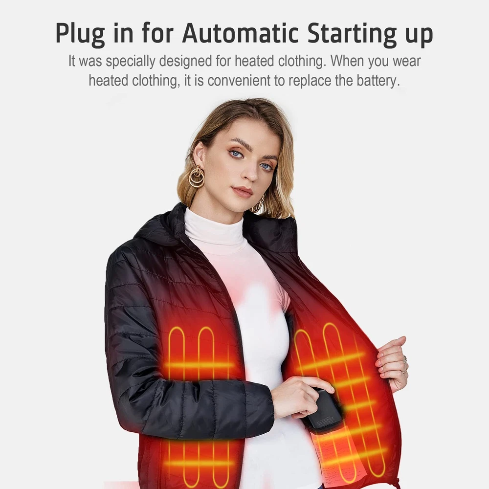 Rechargeable Battery for Heated Vest 10000 mAh 5V 2A 【Small Size Designed for Heated Vest Pockets】Different from other heated vest batteries, Whsahans heated vest battery pack is small and compact enough to fit into your vest pocket. It's the best choice for going out. 【Multiple safety protection】Whsahans power bank has a built-in intelligent safety protection chip of voltage regulator. Multiple protection procedures protect your devices against overvoltage, excessive current, overcharging, and short circuit. Balanced operating temperature, safe and not hot. 【Plug in for Automatic Starting up 】It was specially designed for heated clothing. When you wear heated clothing, it is inconvenient to replace the battery. With our products, you do not need to press the switch button because it will be power on as soon as the battery was connected. It will sleep automatically when it is not working. 【Complete Security Certifications】Our products have passed many certifications from different countries, such as UL, FCC, CE, RoSh, and PSE. After years of quality upgrading, now Whsahans power bank can be charged repeatedly for more than 800 times, providing long-lasting support for outdoor heated vests. 【Perfect Spare Battery for Heated Clothing】Compatible with most heated devices (heated jackets, vests, and pants) on the market , with seamless battery replacement, it can be taken as an additional battery pack, which enables you to enjoy more time outdoors and keeps you warm at any time.