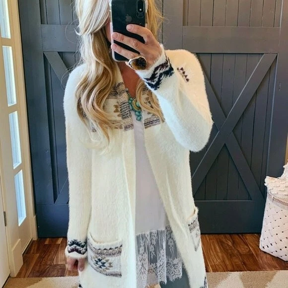 Cozy Boutique Labeled New Native Ethnic Print Soft Cardigan Boho Sweater + Open Front + Front Pockets + Oversized Cozy Fit + Acrylic Poly Blend Yarn + Model is 5'8" / 140 lbs and modeling a size Medium Ships fast from our studio in Washington State! Approx. Measurements: XL: Pit to pit: 24.5", Length: 38" ** Double pit to pit for total bust measurement Brand New With Tags! Combined Shipping Discount: Check out my other sweaters up for auction at up to 80% off retail! Each additional item purchased the same day ships for $1.00 each! Check out our other auctions: Check out my eBay Store! ** Bid With Confidence ** 20 Years on eBay with a Top Rated Status **