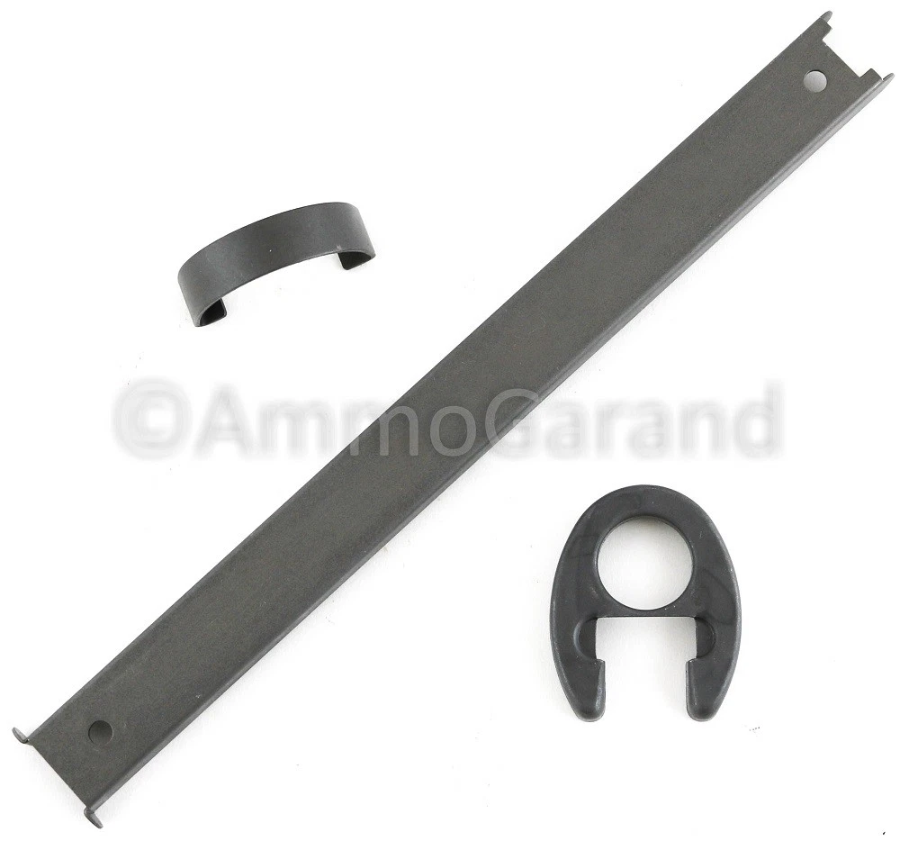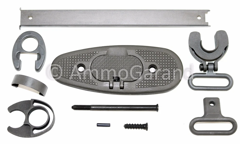 M1 Garand Butt Stock Metal Set complete with New Lower Band and Roll Pin. New M1 Garand Stock Metal Hardware Set. Sets have EVERYTHING needed, ie. most do NOT offer the Lower Band or Pin, we do! Sets are NEW production and finished with Grey Zinc Phosphate parkerization. Set includes: Butt Plate with Long & Short Screws Rear Sling Swivel Stock Ferrule Assembly Front Hand Guard Ferrule Front Hand Guard Spacer Rear Hand Guard Clip Lower Band with new Roll Pin All parts will match in finish vs. trying to match odd bits. NOTE: * For Multi Item Buys, we combine buys and refund difference when we ship as Ebay usually has incorrect shipping when you buy more than two lots or get other items we sell. ** All orders shipped with USPS Tracking US Sales ONLY!!