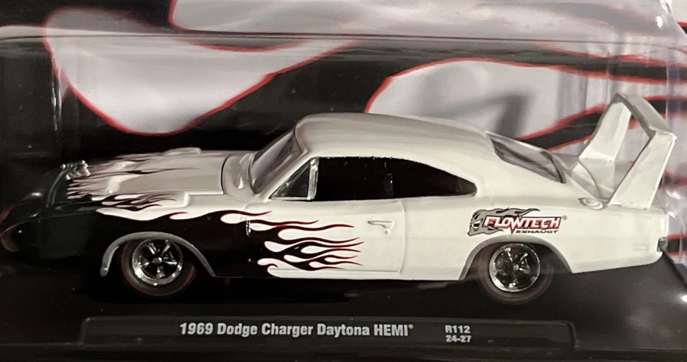 🔥M2 ~ 1969 Dodge Charger Daytona HEMI White & Black Only #/9600 Flowtech RR’s — M2 Machines BEAUTY!! Shipped via USPS Ground Advantage Condition is New I DO COMBINE ALL SHIPPING!!!🔥🔥