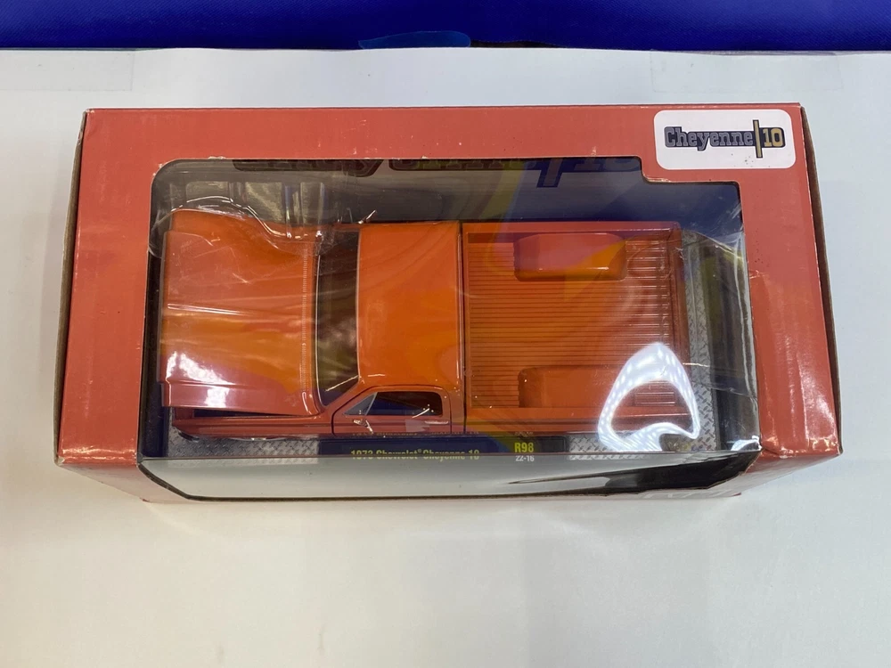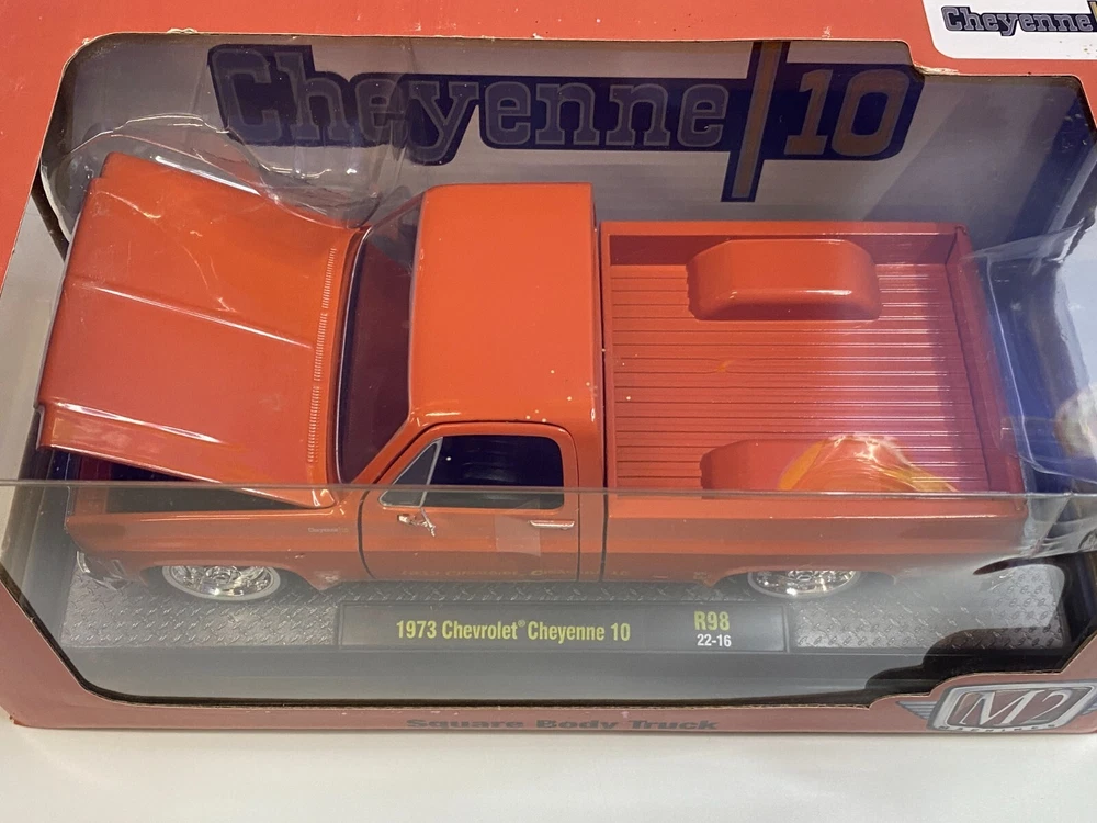 UP FOR YOUR CONSIDERATION IS A M2 MACHINES 1/24 SCALE SQUAREBODY ORANGE 1973 CHEVROLET CHEYENNE 10. ITEM IS NEW IN THE PACKAGE. CAR & BOX (BOX SHOWS A LITTLE WEAR AS SHOWN IN PICTURES) LOOK TO BE IN NICE CONDITION. CHECKOUT PICTURES FOR FURTHER DESCRIPTION. THE ITEM IN THE PICTURES IS THE ITEM YOU WILL RECEIVE. WILL BE PACKAGED AND SHIPPED WITH CARE. THANKS FOR LOOKING.. I PACK ALL ORDERS WITH CARE AND SHIP THEM IN A TIMELY MANNER TO ENSURE SAFE ARRIVAL OF YOUR GOODS. IF SOMETHING ARRIVES AND IS NOT TO YOUR SATISFACTION, PLEASE LET ME KNOW AND I WILL MAKE IT RIGHT. FEEDBACK WILL BE GIVEN TO BUYERS, WHEN FEEDBACK IS GIVEN TO SELLER. THANK YOU FOR YOUR BUSINESS.