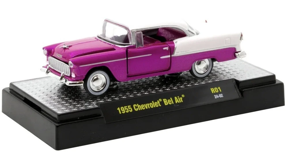 gtin13: Does not apply Scale: 1:64 Vehicle Type: Car Model: Chevy Bel Air Brand: M2 Machines Material: Diecast Year of Manufacture: 2024 Theme: Walmart Exclusive Vehicle Year: 1955 Color: Pink Vehicle Make: Chevrolet Features: Limited Edition, Unopened Box, With Stand Series: Pink Chrome UPC: Does not apply