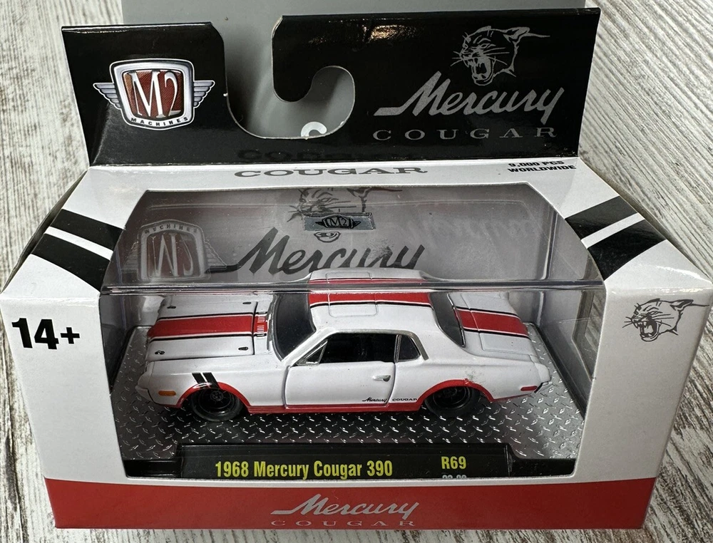 This M2 Machines 1:64 diecast model of a 1968 Mercury Cougar 390 Release 69 is a perfect addition to any car enthusiast's collection. The attention to detail is impressive and the paint job is flawless, making it a great display piece. The model is made with high-quality materials and the scale of 1:64 ensures that it is the perfect size for display on a shelf or in a case. This model is a must-have for any fan of classic cars or diecast models.