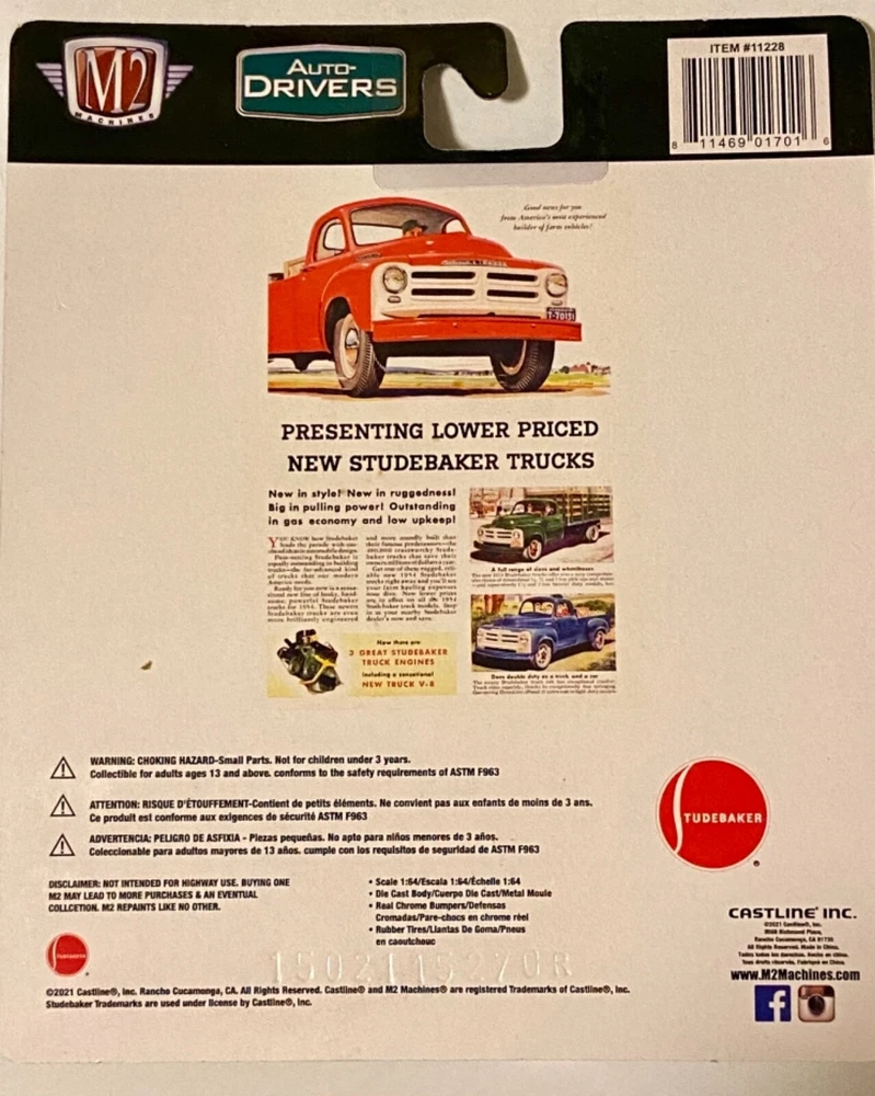 M2 Machines • 1/64 Die-Cast • 1954 Studebaker 3R Truck • RED • With Rubber Tires. NIP Same Day Shipping and Packaged with care! Thank You for shopping TKO Specialties