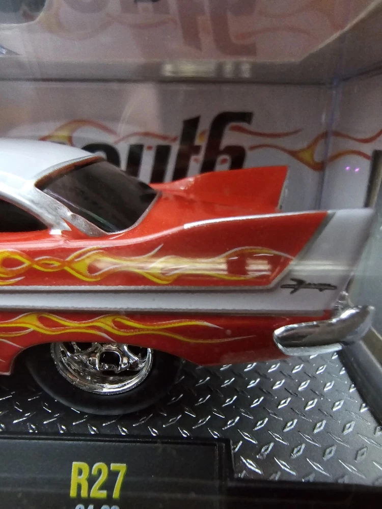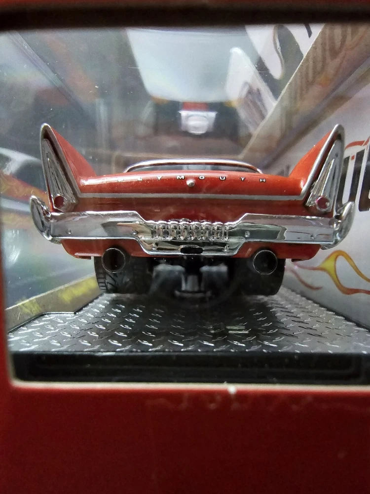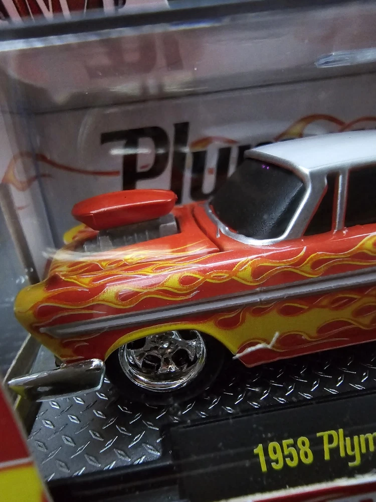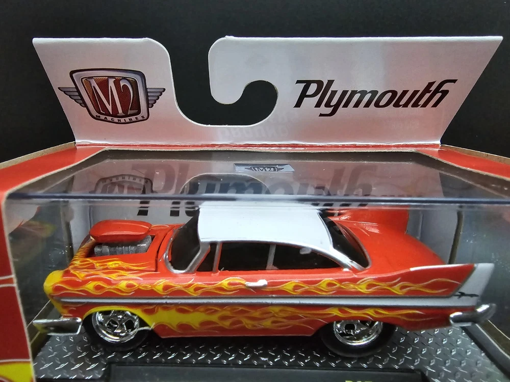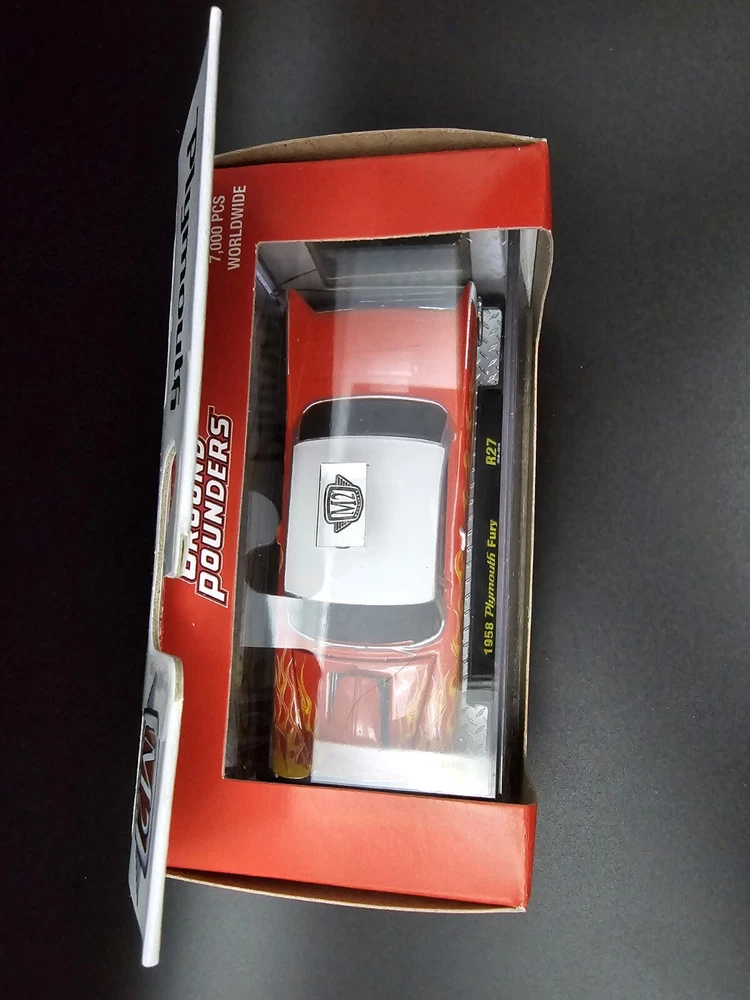 This M2 Machines 1958 Plymouth Fury diecast car is a must-have for any collector. The car is beautifully crafted with red paint and orange flames, making it a standout piece in any display. The 1:64 scale model is part of the Ground Pounders series and comes in a limited edition unopened box. The car features a Plymouth vehicle make and model Fury, with a vehicle year of 1958. It also includes aspects such as Autographed: No, Material: Diecast, and Features: With Case and Stand. This car is perfect for anyone who loves collecting diecast cars and wants a unique piece to add to their collection.