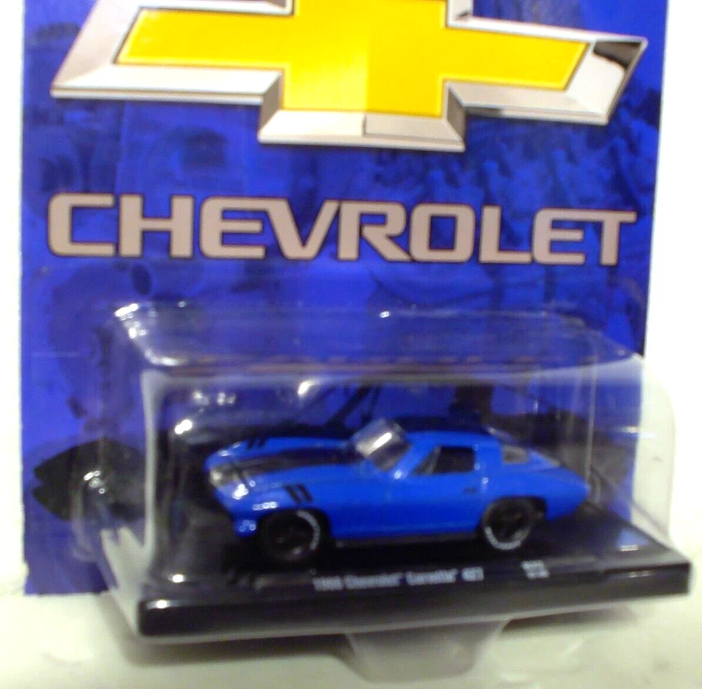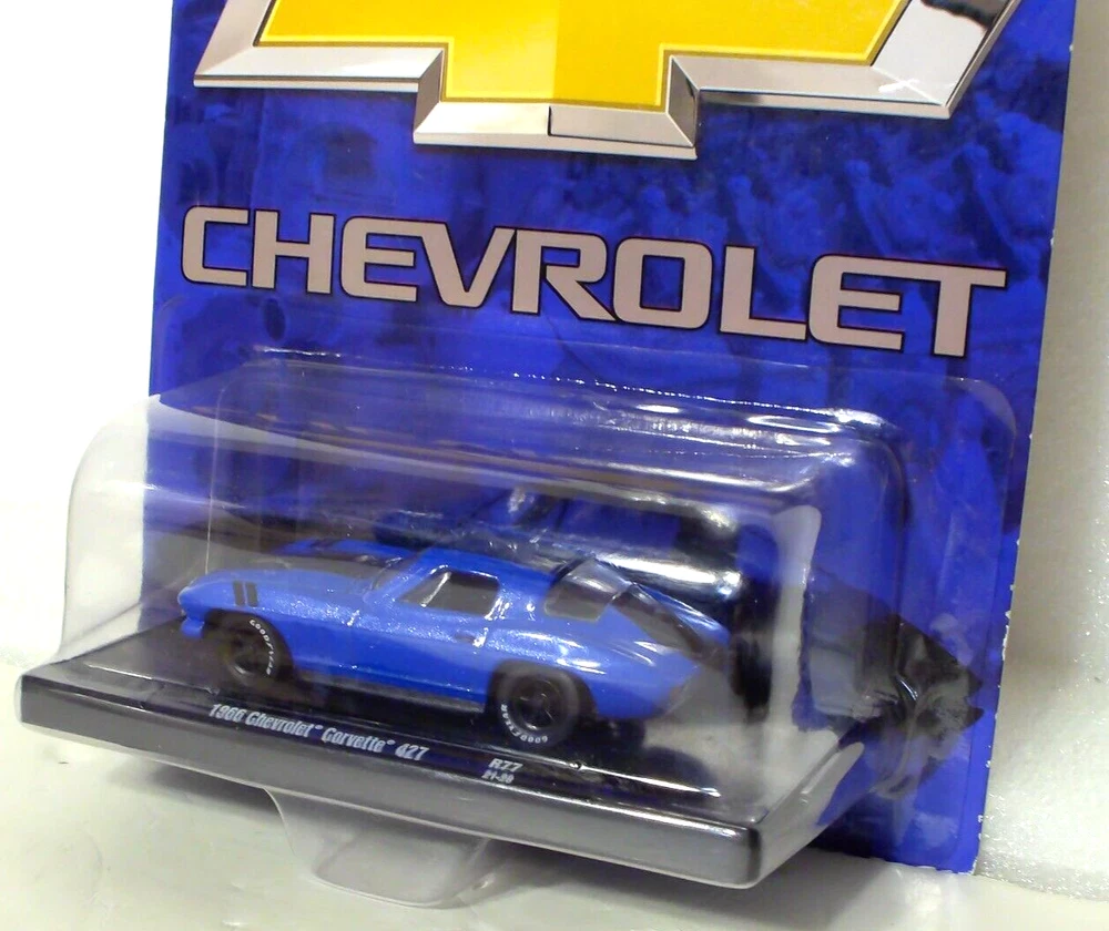 M2 Machines 1966 Chevrolet Corvette 427 1:64 Diecast. Car is new in a sealed package. Card has light edge and corner wear. Includes an open display stand.