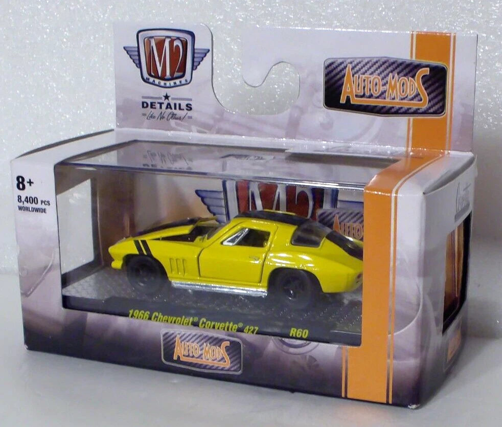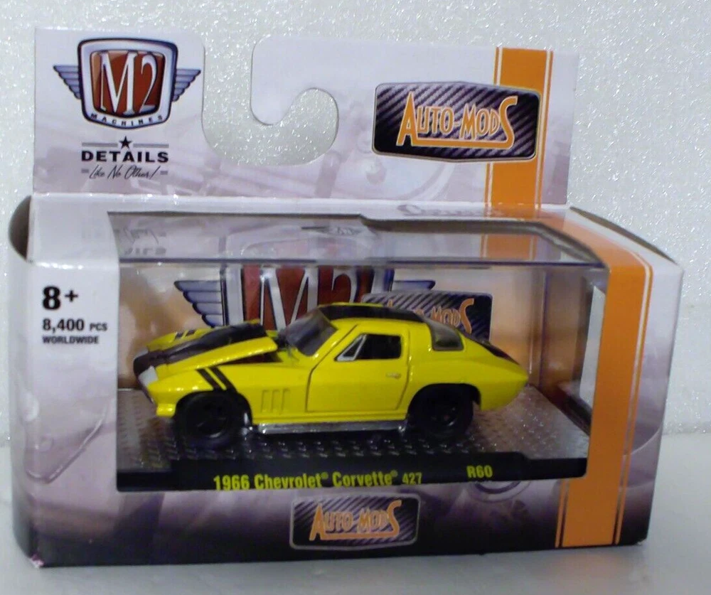 M2 Machines 1966 Chevrolet Corvette 427 1:64 Diecast. Car is new in a sealed package. Box has light edge and corner wear. Includes an acrylic display case.