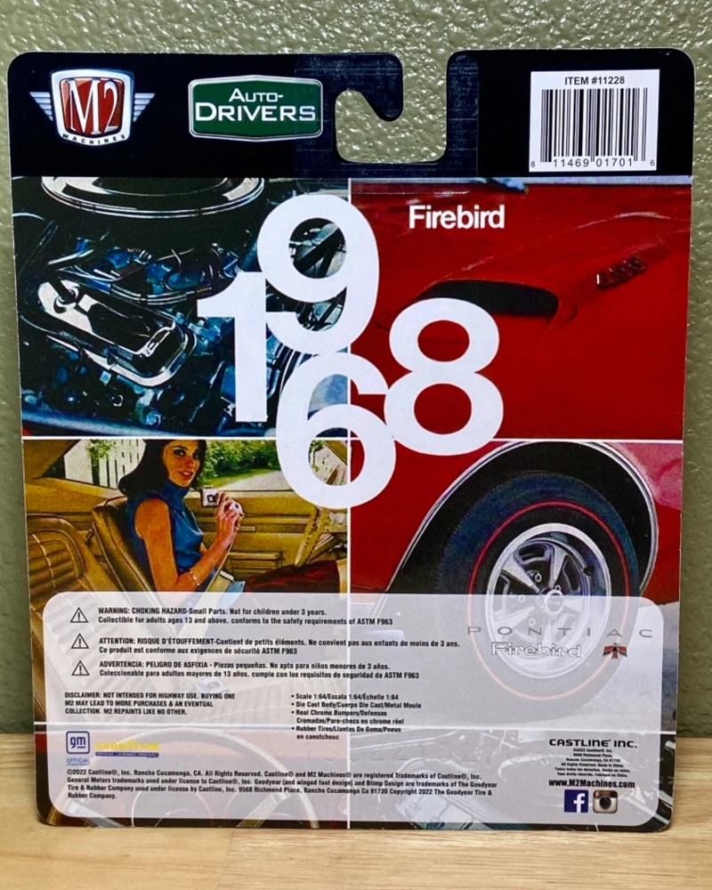 This M2 Machines 1968 Pontiac Firebird 400 H.O. R85 22-13 is a limited edition collectible car made of diecast material. It is a 1:64 scale model of a 1968 Pontiac Firebird with no customization. The car is white in color and does not have any autographed or modified features. It is recommended for children aged 8 and above and is a great addition to any toy vehicle collection. The car was manufactured in the United States in 2022 and is a part of the M2 Machines series. Same day shipping and packaged with care. Thank you for shopping TKO Specialties