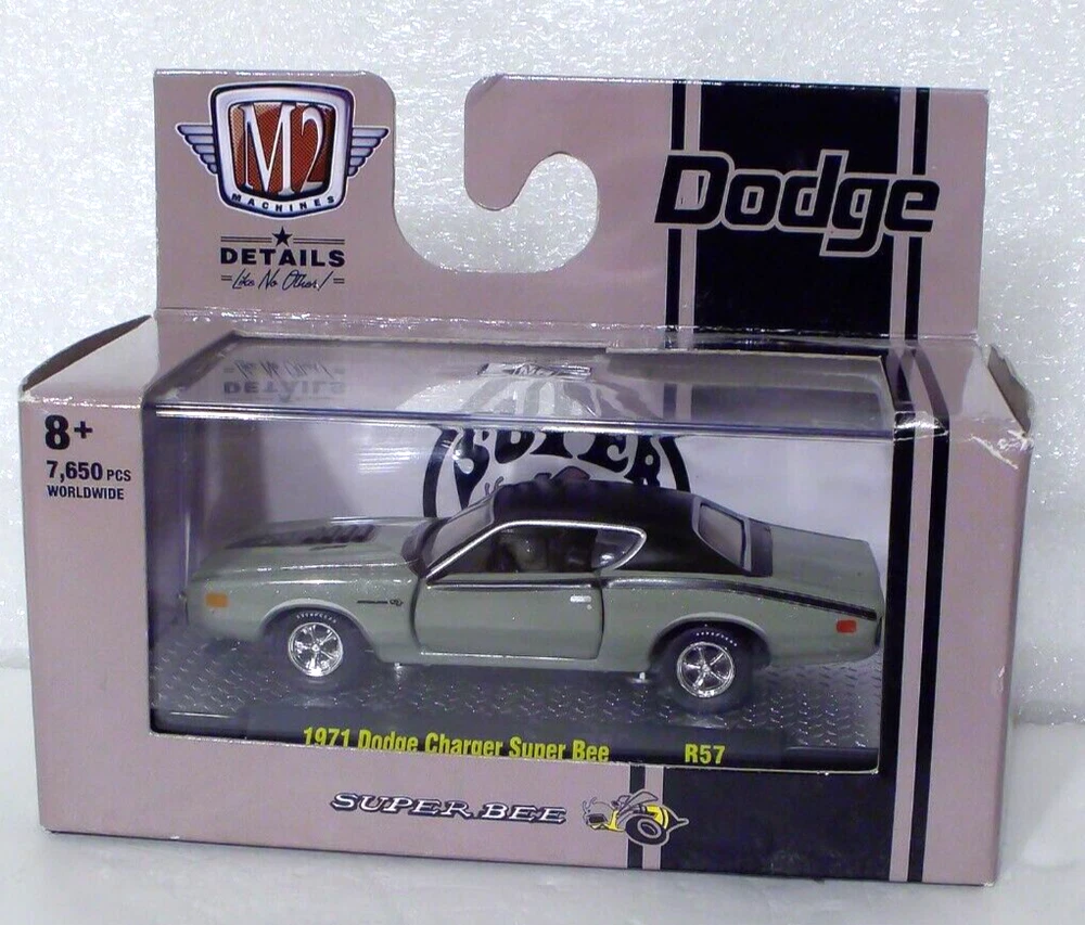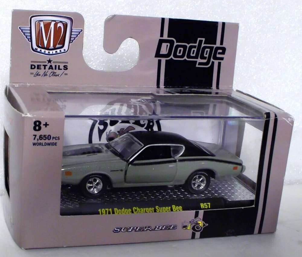 M2 Machines 1971 Dodge Charger Super Bee 1:64 Diecast. Car is new in a sealed package. Box has some edge and corner wear, see photos for details. Includes an acrylic display case.