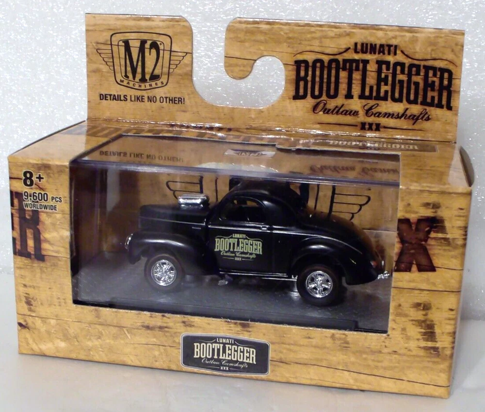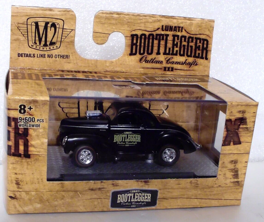 M2 Machines Bootlegger 1941 Willys Coupe Gasser 1:64 Diecast. Car is new in a sealed package. Box is in new condition. Includes an acrylic display case.