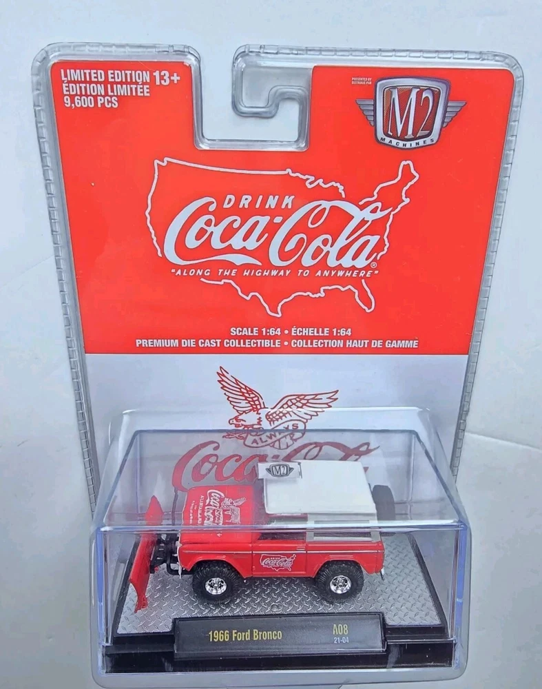 M2 Machines Coca Cola 1966 FORD BRONCO w/ SNOW PLOW Limited 1 of 9600 A08 21-04 2021 release. If you have any questions please send a message. All packages are shipped through USPS.