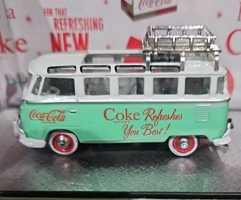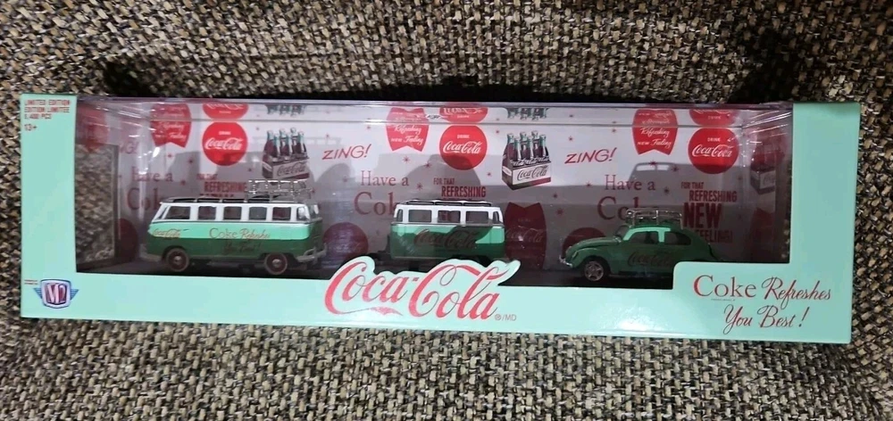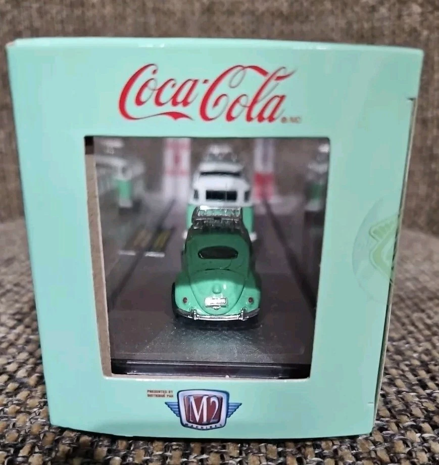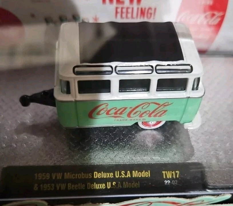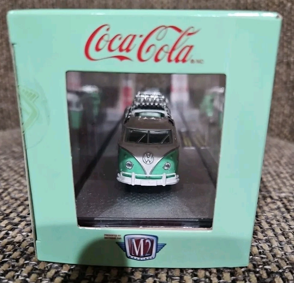This M2 Machines Coca-Cola 1959 VW Microbus Deluxe & 1953 VW Beetle Deluxe 1:64 is a must-have for any collector or enthusiast. The attention to detail on these diecast models is impressive, with a vibrant green color and Volkswagen branding. The set includes a 1959 VW Microbus Deluxe and a 1953 VW Beetle Deluxe, both in 1:64 scale. The models come in an unopened box with a special edition chase design, making them a great addition to any collection. Additionally, the set includes a personal number plate and advertising specimen, making it a unique and valuable item. Recommended for ages 13 and up, this set is perfect for both boys and girls.