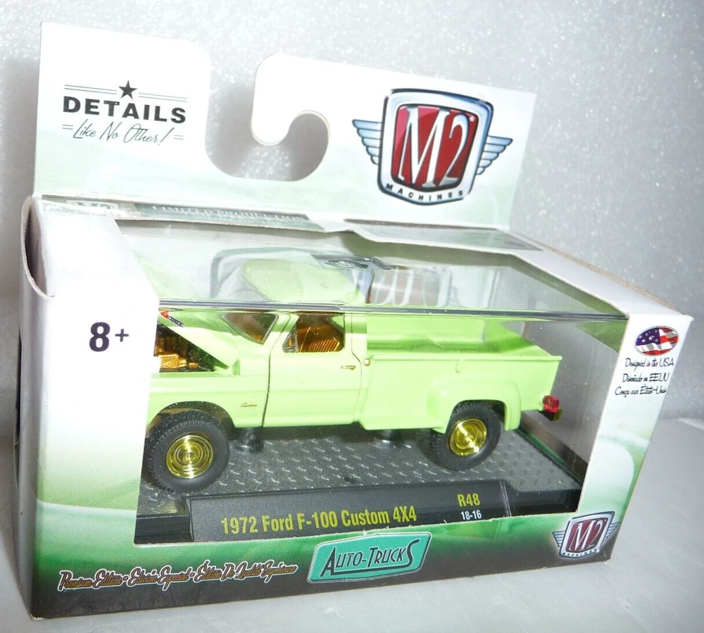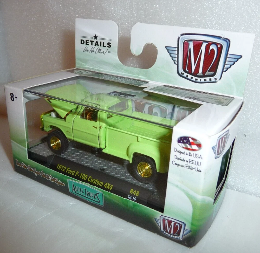 M2 Machines Gold Chase 1/750 1972 Ford F-100 Custom 4X4 1:64 Diecast. Car is new in package. Box has light edge and corner wear. Includes an acrylic display case. Gold Chase!