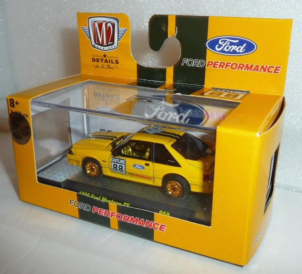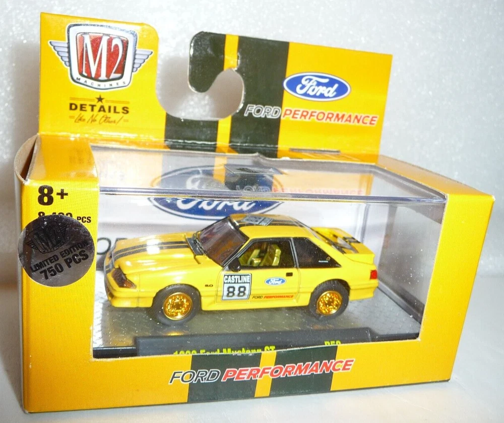 M2 Machines Gold Chase 1988 Ford Mustang GT 1:64 Diecast. 1/750 Car is new in package. Box is in new condition. Includes an acrylic display case.