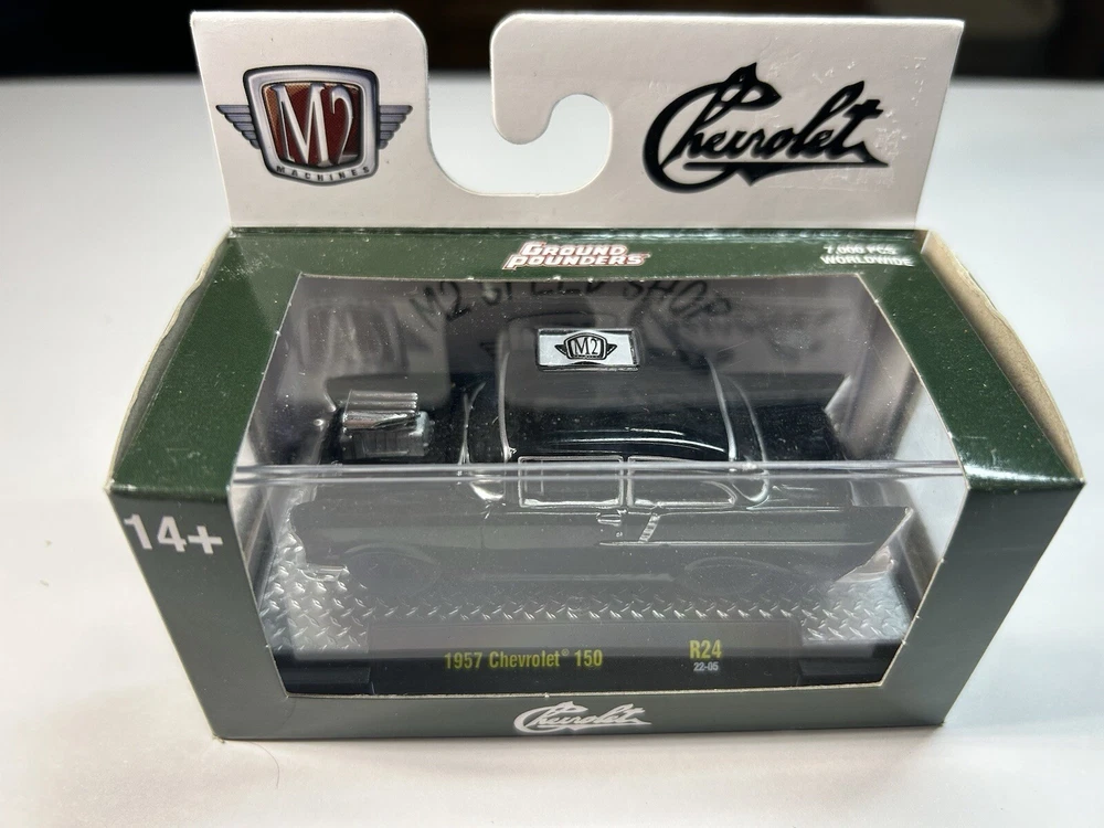This M2 Machines Ground Pounders R24 diecast car is a must-have for any collector or enthusiast. With a 1:64 scale and black color, this 1957 Chevrolet 150 model is a great addition to any collection. The car is unopened and comes in its original box, making it a perfect gift for boys and girls alike. The car is part of the ground pounders series and features the Chevrolet M2 model. It was manufactured in 2023 and has not been customized. The car is not autographed and is a contemporary manufacture. Get your hands on this amazing piece of diecast car history today!