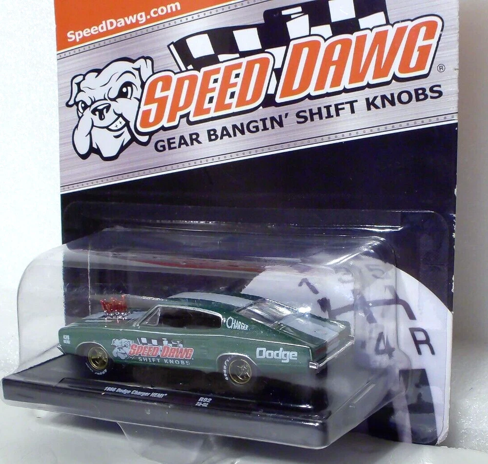 M2 Machines Speed Dawg 1966 Dodge Charger Hemi 1:64 Diecast. Car is new in a sealed package. Card has some edge and corner wear. Includes an open display stand.