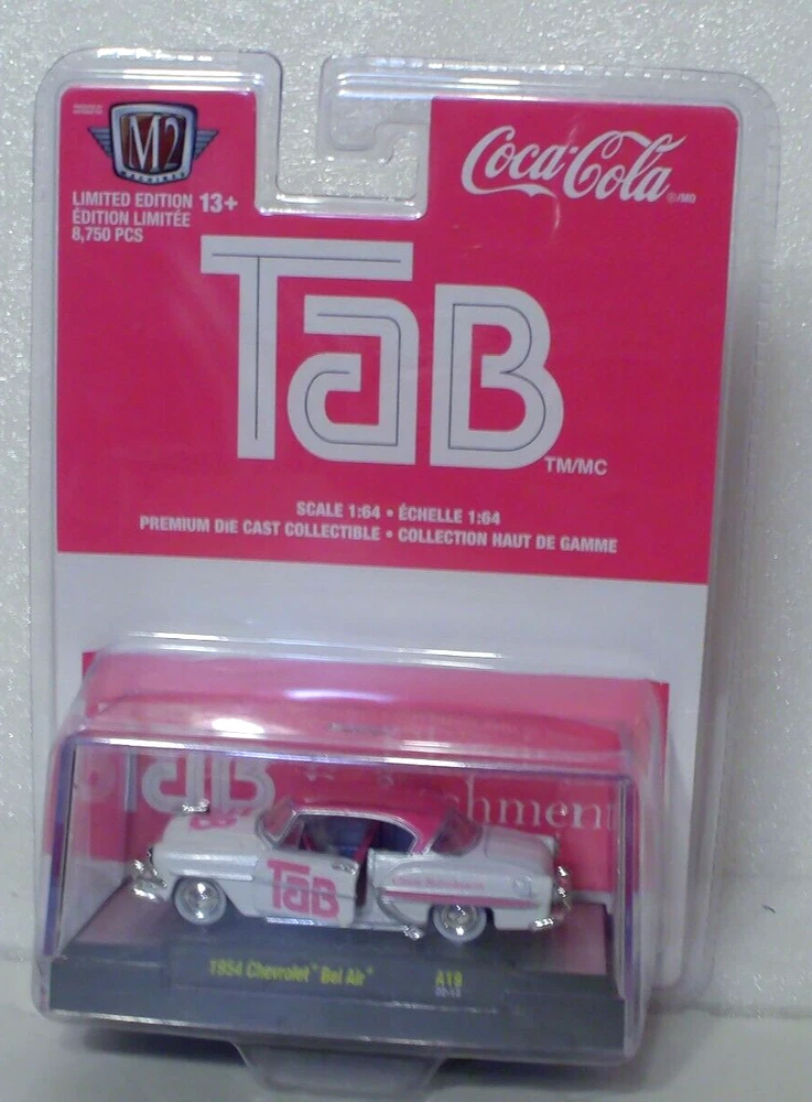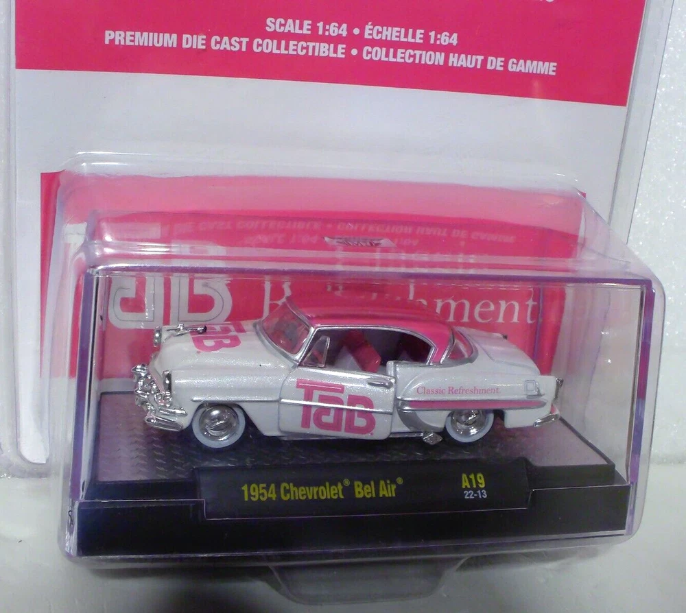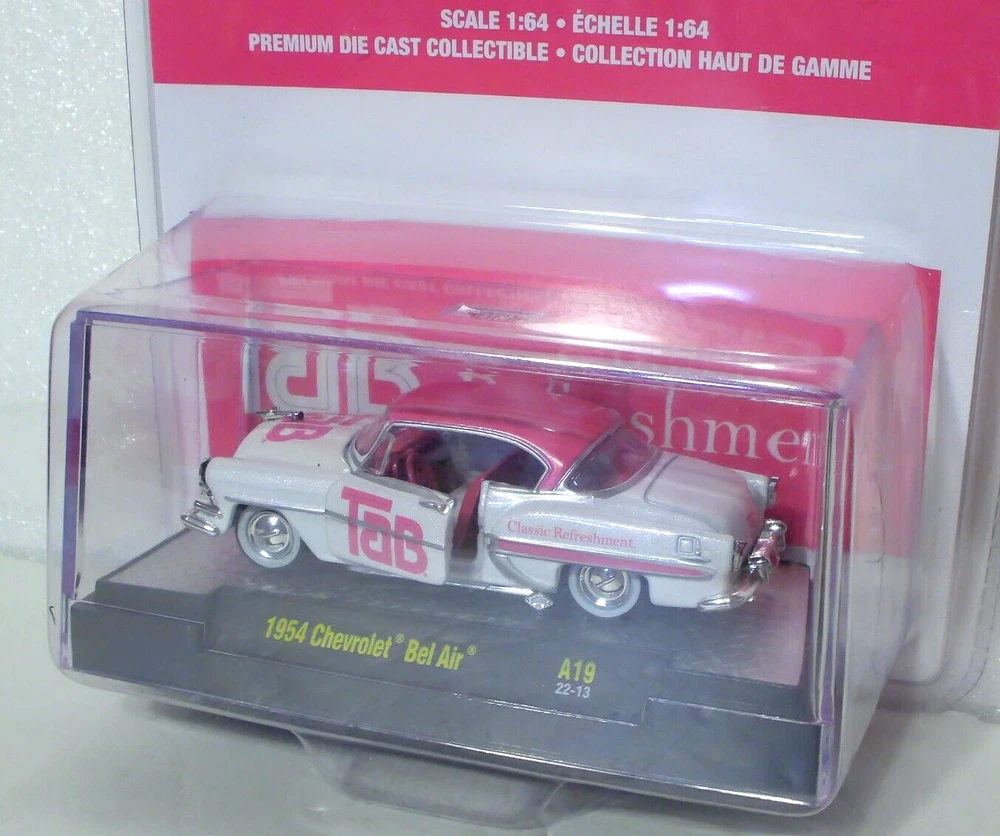 M2 Machines Tab 1954 Chevrolet Bel Air 1:64 diecast. Car is new in a sealed package. Package is a plastic clamshell. Includes an acrylic display case.