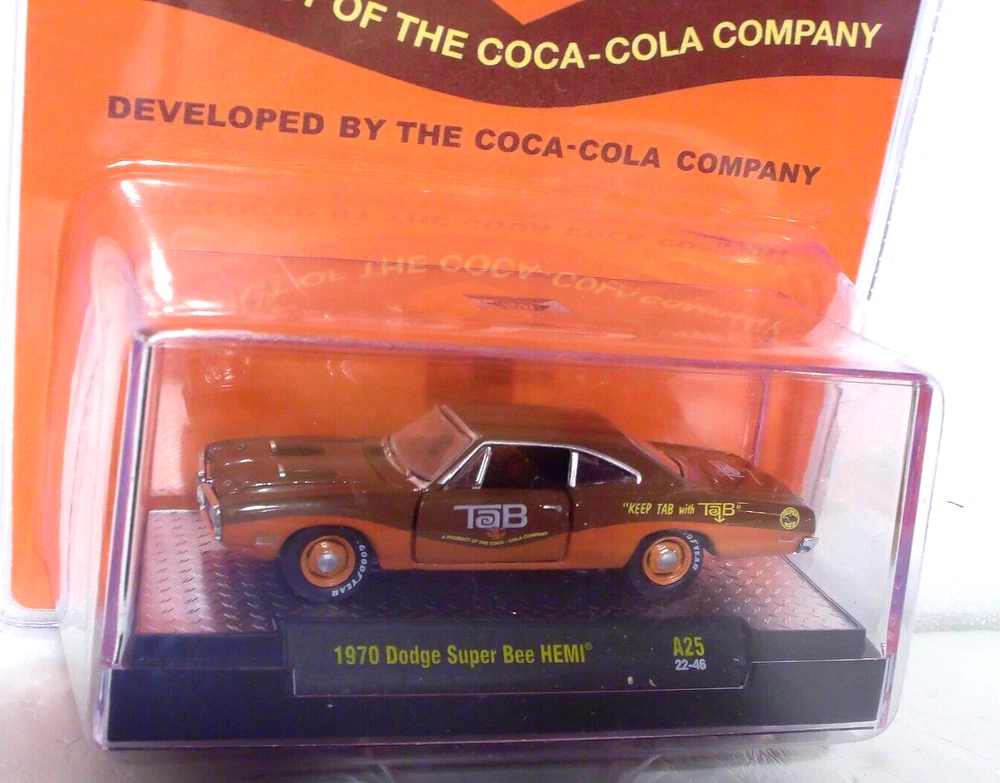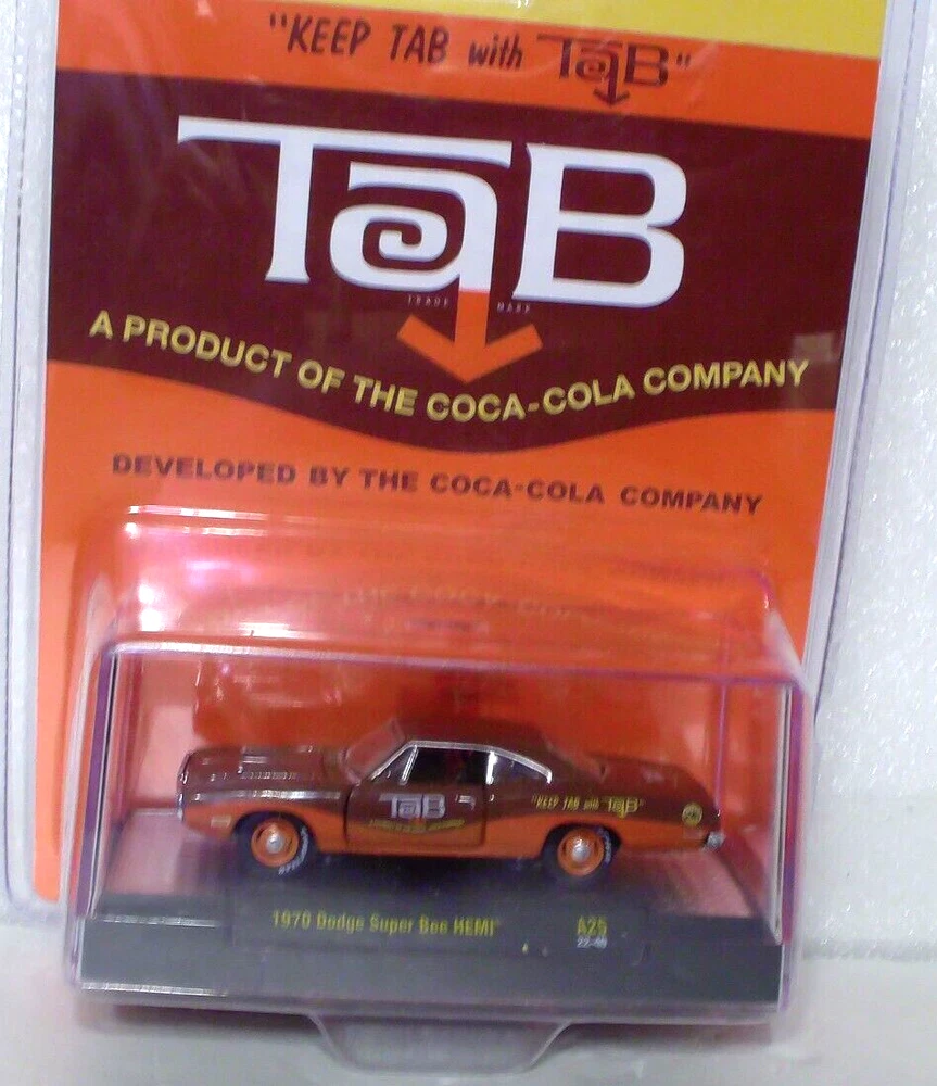 M2 Machines Tab 1970 Dodge Super Bee Hemi 1:64 Diecast. Car is new in a sealed package. Package is a plastic clamshell. Includes an acrylic display case.