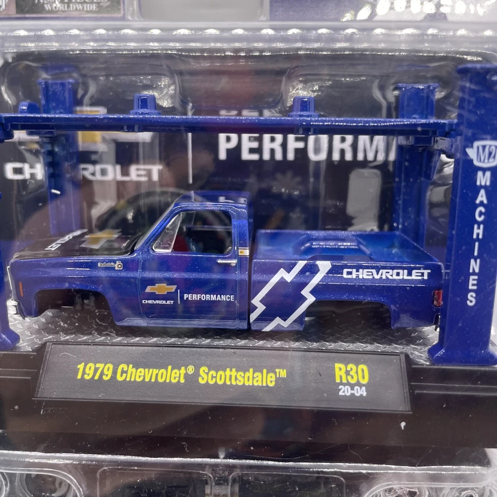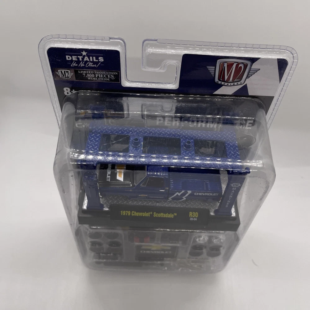 The product is an M2 Machines model kit of a 1979 Chevrolet Scottsdale in a blue color. This diecast toy vehicle is part of the Chevrolet collection by M2 Machines, featuring detailed craftsmanship and design. The Chevrolet Scottsdale M2 model is a representation of a classic Chevrolet truck, perfect for collectors and enthusiasts of diecast toy vehicles. Please view photos for the condition of this item will gladly combine shipping and ship in the US only thank you