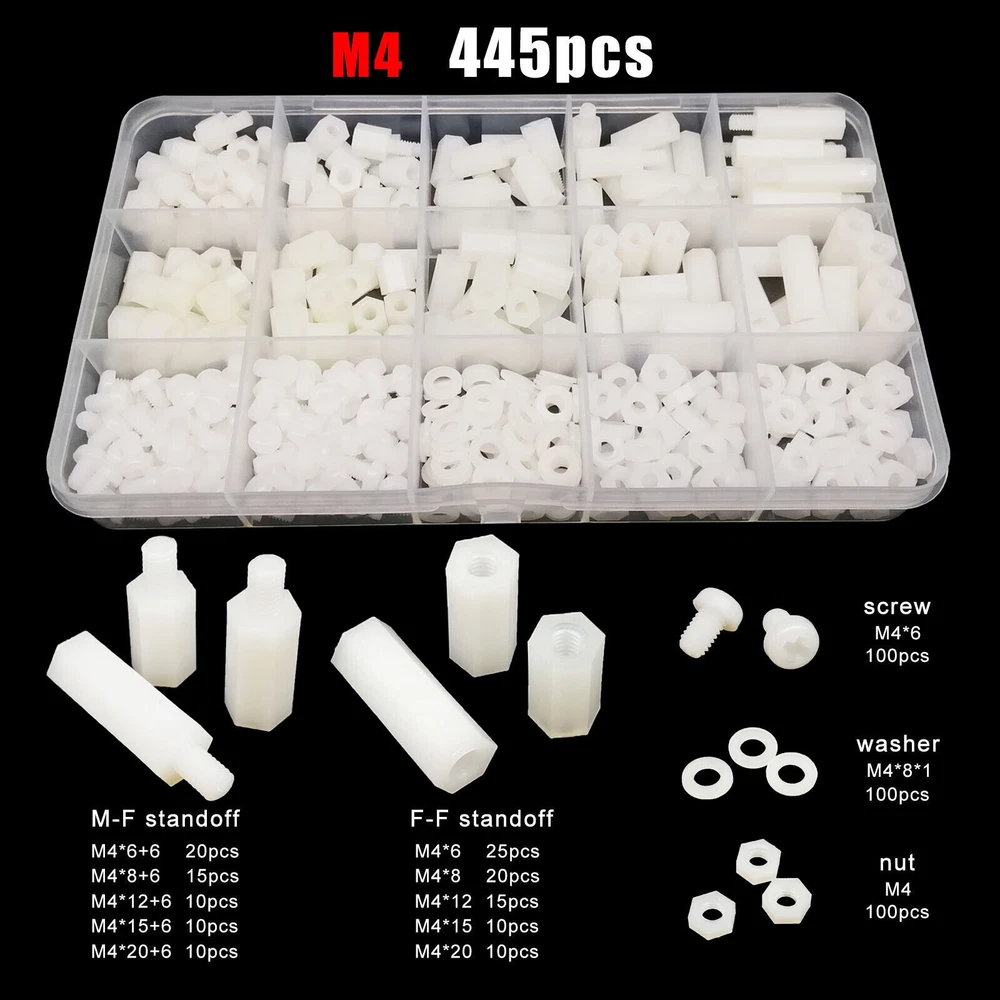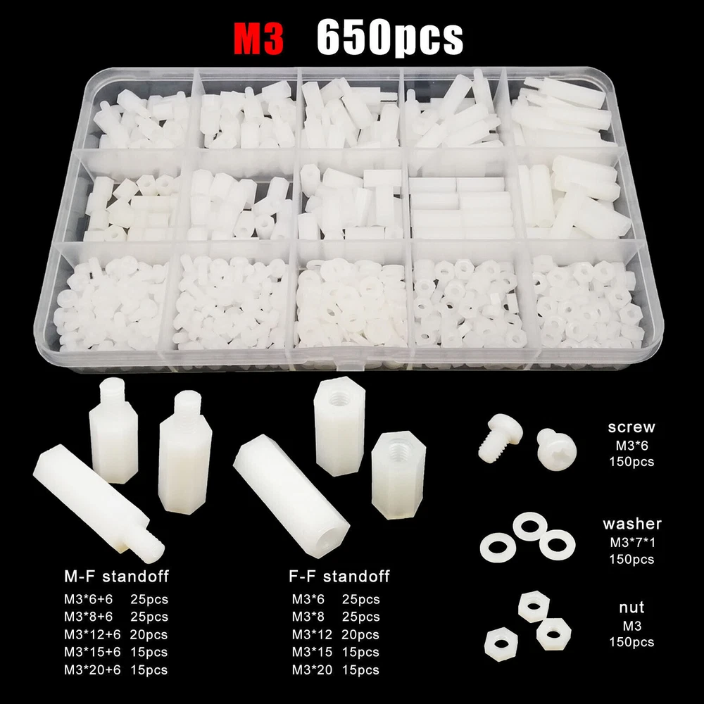 Material nylon Package include M2 1300pcs M2.5 850pcs M3 650pcs M4 445pcs On Feb 7, 2025 at 21:12:42 PST, seller added the following information: