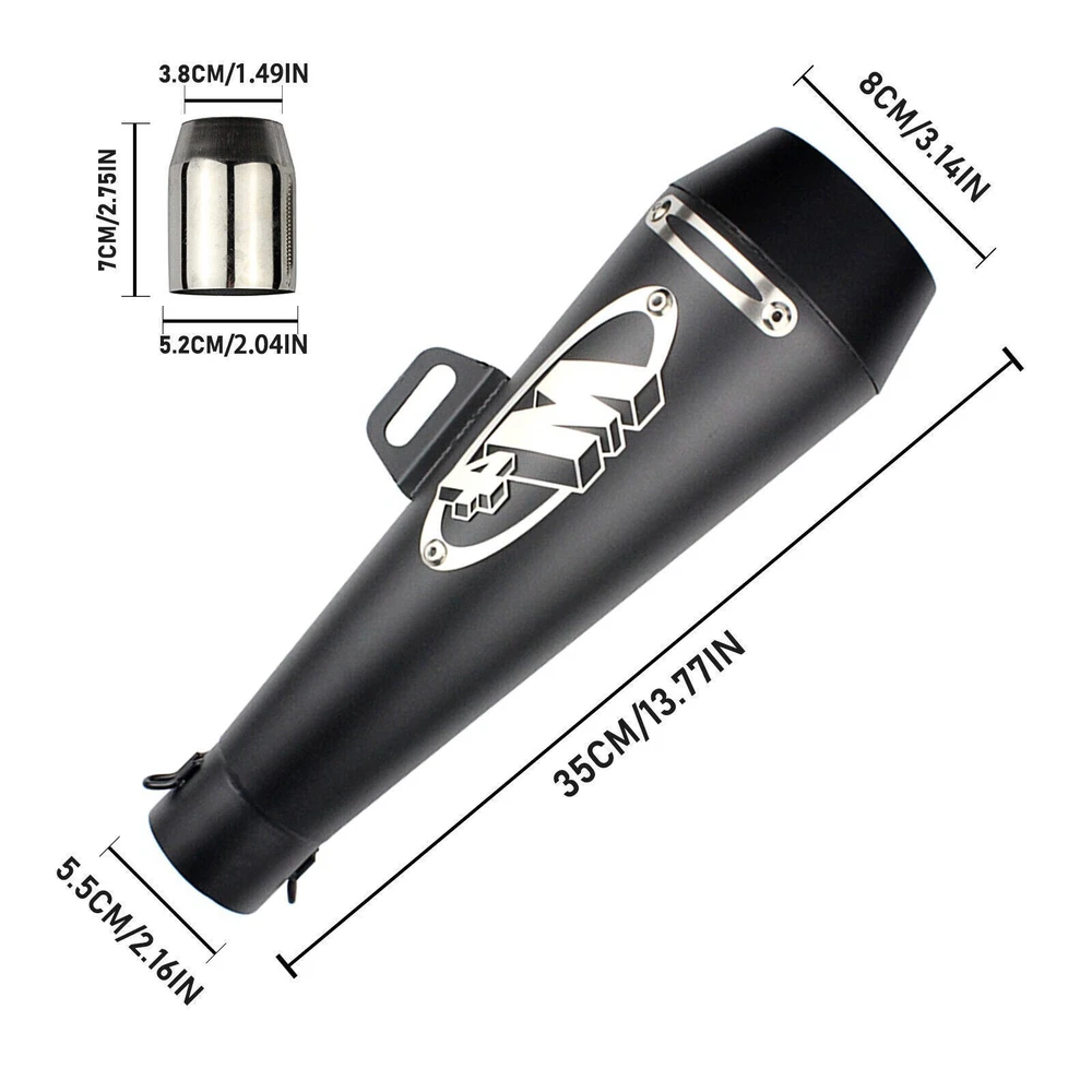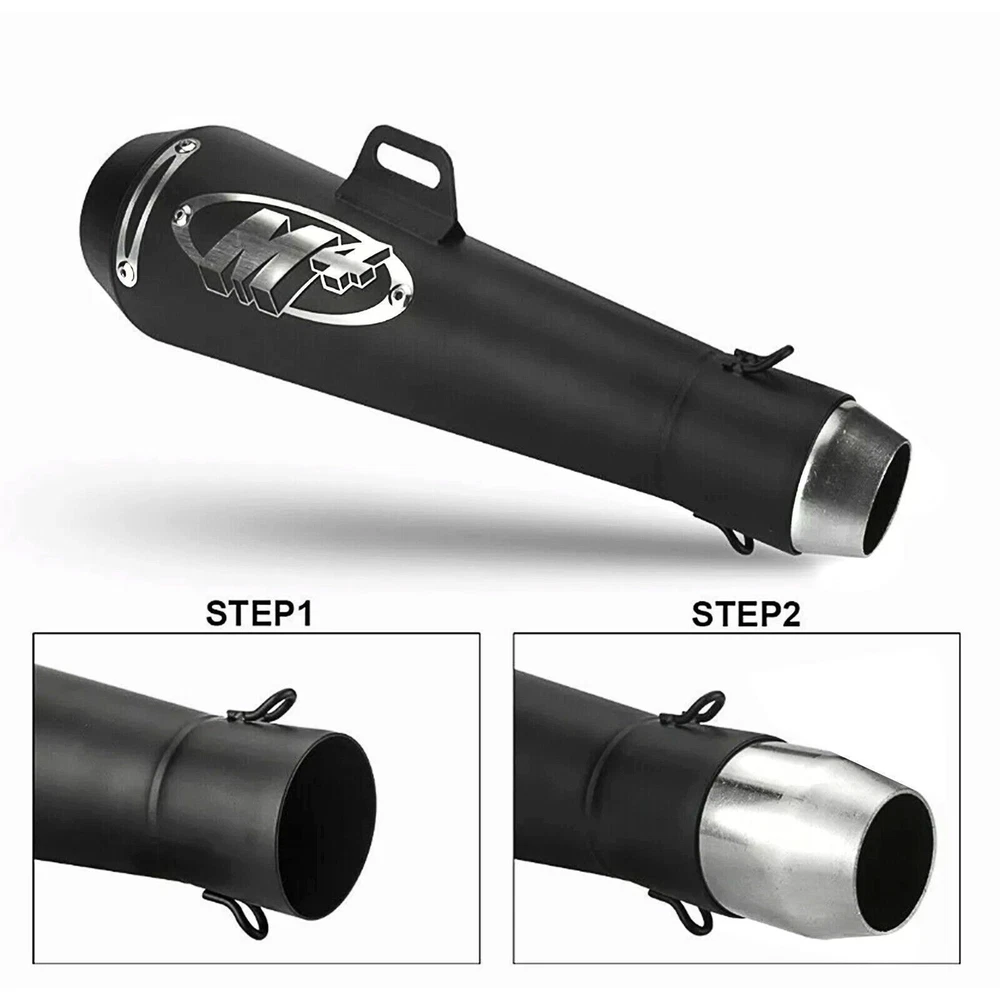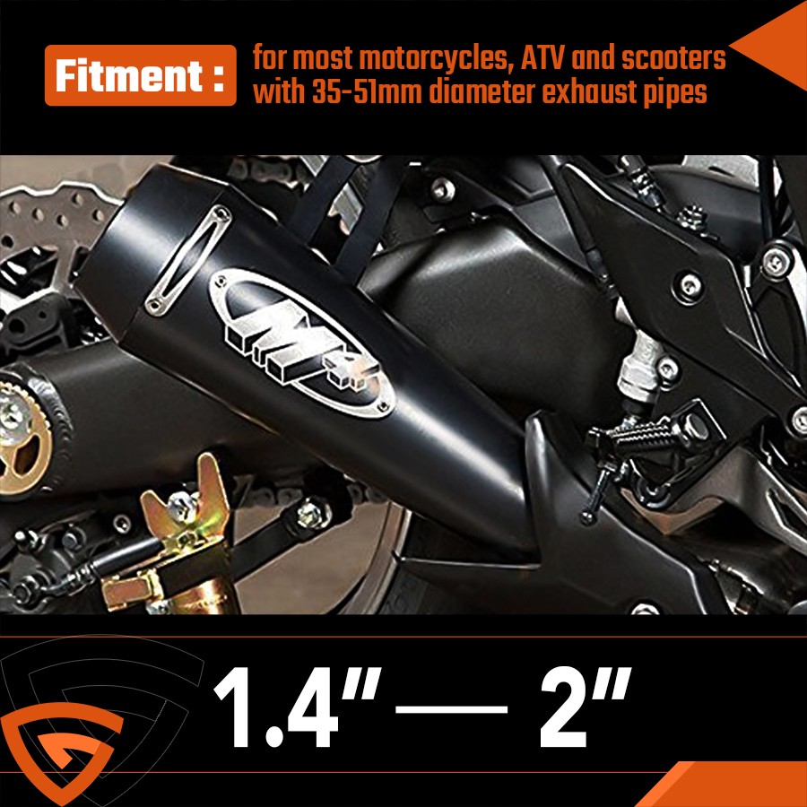 Description: Premium stainless steel construction, added high-temperature coating process, durable, high temperature resistant and anti-corrosion, superior longevity. Make your motorcycle roar with outstanding sound, increase your racing style. Classic black color, elegant and generous, an add-on decoration to dress up your motorcycle. Welding bracket included, easy to install. Helps your motorcycle obtain maximum output, ensuring its top exhaust performance. Universal fits for most motorcycles, ATV and scooters with 38-51mm diameter exhaust pipes. Specifications: Material: stainless steel Color: black Size: shown as picture Installation location: Right Fitment: For most motorcycles, ATV and scooters with 38-51mm diameter exhaust pipes Notes: 1. It is easy to install, but professional installation is always recommended. 2. Please allow 0.2 inch error due to manual measurement, thanks for your understanding. 3. Certain models(Yamaha R6/Suzuli GSXR...) must add the middle section first, cannot use this exhaust pipe directly. (middle section IS NOT INCLUDED in the package). Package: 1x Exhaust Muffler Pipe 1x Adapter 1x Set of Mounting Accessories