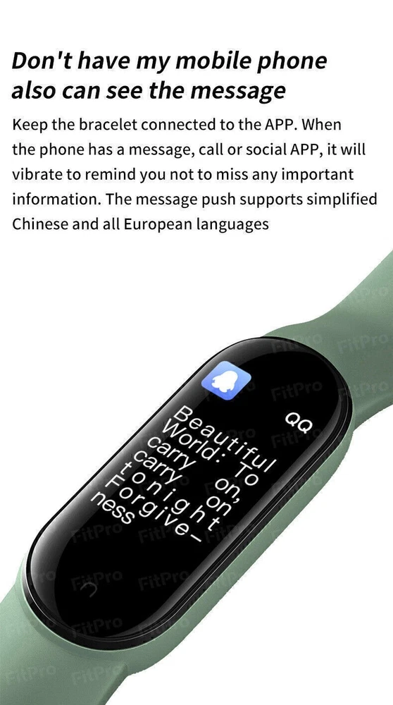 Product Description If you have any questions, please contact customer service first, do not open disputes easily, thank you! Features: 1. Health monitoring: Blood pressure monitoring, heart rate monitoring, sleep monitoring, sedentary reminder. 2. Standard sports function: Step, calorie, distance calculation. 3. Multiple sports modes. 4. Call reminder and information push: connect to "Fitpro" APP, to display calls, text messages and SNS (For Twitter, Line, WhatsApp, Skype, Facebook, KaKaoTalk, WeChat, QQ) and other notifications; never miss important information. 5. Other functions: Alarm clock, stopwatch, raise your hand to brighten the screen, take photos, remote music,find the bracelet. Specifications: Type: Smart Watch System requirements: For Android 5.0 and above, iOS 9.0 and APP: Fitpro Case Material: Plastic Strap Material: TPU Screen: 0.96inch TFT Colorful screen Chip: HS6620C Bluetooth Version: 4.0 Waterproof Grade: IP67 (note: cannot wear for hot water bath and sauna). Charging Time: About 2 hours Working Time: About 5-7 days Charging Mode: USB Language: Chinese, English, Korean, Japanese, German, Spanish, French, Italian, Portuguese, Arabic, Russian, Dutch, polish, Turkish,Czech,Slovak,Thai,Malayan,etc. Package Included: 1 x Smart Bracelet 1 x User Manual 1 x USB Charger Notes: 1. Due to the difference between different monitors, the pictures may not reflect the actual color of the item. 2. Compare the detail sizes with yours, please allow 1-3cm error, due to manual measurement. 3. Please leave a message before you give the bad feedback, if the products have some problems. Thanks for your understanding and have a nice day! About Us We accept all payments authorized by eBay. About Us We accept all payments authorized by eBay. powered by