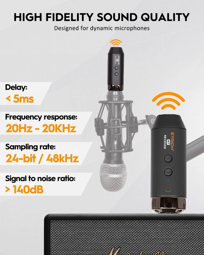 Store New Arrivals Add to Favorite View Feedback Contact M7 Wireless Microphone Transmitter Receiver 5.8 Ghz, Wireless Mic Adapter, Plug-On Wireless Mic System XLR for Dynamic Microphone, Audio Mixer, Audio Recorder, PA System, 20Hz-20Khz, 140Db Description Item model number M7 Power Source Battery Powered Product Dimensions 7.48 x 5.12 x 1.65 inches Country of Origin China Compatible Devices Wireless Microphone Connector Type USB Item Weight 13.1 ounces Color Name Black 115 Feet Wireless Transmission: The STRICH M7 wireless microphone system, which has strong anti-interference ability, longer transmission distance, and high stability, solid RF connection you from traditional cables with an impressive 115 feet / 35 meters wireless range (subject to environmental conditions). 5.8 GHz Technology: The M7 wireless mic transmitter receiver utilizes advanced 5.8 GHz transmission technology, ensuring robust resistance to interference, extended transmission distances, and exceptional stability. High-Quality Audio Transmission: With a 24-bit audio resolution and a 48K sampling frequency, the M7 XLR wireless Mic system delivers crystal-clear, high-fidelity audio signals. Experience distortion-free, noise-free transmission with less than 5ms latency. 4 Frequency Channels: The STRICH M7 Mic wireless transmitter and receiver offers four frequency channels for your convenience, allowing you to use up to four M7 devices simultaneously without interference. Ideal for multi-person speeches, singing, and performances. Extended Battery Life: Depending on your usage frequency, the STRICH M7 wireless XLR transmitter receiver can operate continuously for up to 4 hours, please note: low battery level can affect transmission distance. Product Description Wireless Abandon the traditional tangled wires, allowing your speech and performance to be more free. 4-Hour Working Time Display your connection status, allowing you to monitor device status clearly, ensuring a more confident performance. 4 Frequencies You can simultaneously use 4 sets of M1 devices without interference. Two Additional Connectors Includes multiple XLR to 1/4-inch adapters, suitable for a wider range of situations. M7 Wireless Mic System Rechargeable Battery 5.8 Ghz Working Frequency UHF 20Hz - 20kHz Frequency Response 40Hz - 20KHz 24-bit / 48KHz Sampling Rate 24-bit / 48KHz >140 dB SNR 95 dB < 5ms Delay < 5ms Rechargeable Battery 5.8 Ghz Working Frequency UHF 20Hz - 20kHz Frequency Response 20Hz - 20kHz 24-bit / 48KHz Sampling Rate 24-bit / 48KHz >140 dB SNR 110 dB < 5ms Delay < 5ms M2 M1 ABOUT US We offer the best prices around on high quality products. Our E-store includes media such as books, movies, music and games while offering electronics, toys, sporting apparel, clothing, tools, general home, garden items and more. SHIPPING We are always working hard to ensure your package arrives as soon as possible. Please understand that some factors like weather, high postal traffic, and the performance of shipping companies are outside of our control. We offer free shipping to the lower 48 states and ship within 2 business days of payment, usually sooner. We do not accept P.O. Boxes. Please provide a physical address. For shipping outside of the continental USA, we only use eBay's Global Shipping Program.The item is shipped to KY and then sent to the rest of the world. International customers are responsible for all duties and taxes. Continue to check out in order to calculate costs for shipping the item to your country. Messages regarding eBay's Global Shipping Program MUST be directed at eBay EXCLUSIVELY. RETURNS We offer a 30-Day Return Policy on items which you are not completely satisfied with. You have the option for a full-refund or an exchange of the item. No returns are available on items shipped outside of the USA. PAYMENT We accept PayPal. CONTACT US This page content is yet to come Please ad us to your favorite seller and visit again later Thank You CUSTOMER SATISFACTION We try our very best to make sure every customer is completely satisfied. If there's a problem, message us! We're happy to help. WE ACCEPT Copyright © 2021 AutoDS. | All Rights Reserved