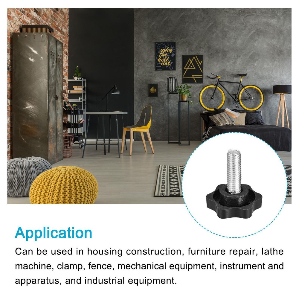 Document APPLY TO - Can be used in housing construction, furniture repair, lathe machine, clamp, fence, mechanical equipment, instrument and industrial equipment.SPECIFICATION:Material: Metal, PlasticHead Dia: 48mm/1.88"Thread Size: M8x16mm (D*L)Total Height: 44mm/1.74''QUANTITY INCLUDED - 1pcs x Clamping Handle Screw KnobADVANTAGE - Made of metal material, it has good hardness and can be fastened for a long time. Star-shape plastic knob, it is non-slip and not easy to break.Note: Please confirm the thread size of the clamping handle screw knobs before purchasing. 1Pcs M8x16mm Clamping Handle Screw Knobs Metal Crank Tapered Grip APPLY TO - Can be used in housing construction, furniture repair, lathe machine, clamp, fence, mechanical equipment, instrument and industrial equipment. SPECIFICATION: Material: Metal, Plastic Head Dia: 48mm/1.88" Thread Size: M8x16mm (D*L) Total Height: 44mm/1.74'' QUANTITY INCLUDED - 1pcs x Clamping Handle Screw Knob ADVANTAGE - Made of metal material, it has good hardness and can be fastened for a long time. Star-shape plastic knob, it is non-slip and not easy to break. Note: Please confirm the thread size of the clamping handle screw knobs before purchasing. Hot Item Payment 1.We accept eBay payment . 2.Payment must be received within 7 business days of auction closing. Shipping 1.We ship to your eBay or Paypal address. Please make sure your eBay and Paypal address is correct before you pay. 2.Items will be shipped within 1-3 business day when we received payment. 3.Delivery time depends on destination and other factors. Description Policy 1Pcs M8x16mm Clamping Handle Screw Knobs Metal Crank Tapered Grip APPLY TO - Can be used in housing construction, furniture repair, lathe machine, clamp, fence, mechanical equipment, instrument and industrial equipment. SPECIFICATION: Material: Metal, Plastic Head Dia: 48mm/1.88" Thread Size: M8x16mm (D*L) Total Height: 44mm/1.74'' QUANTITY INCLUDED - 1pcs x Clamping Handle Screw Knob ADVANTAGE - Made of metal material, it has good hardness and can be fastened for a long time. Star-shape plastic knob, it is non-slip and not easy to break. Note: Please confirm the thread size of the clamping handle screw knobs before purchasing. Hot Item Payment 1.We accept eBay payment . 2.Payment must be received within 7 business days of auction closing. Shipping 1.We ship to your eBay or Paypal address. Please make sure your eBay and Paypal address is correct before you pay. 2.Items will be shipped within 1-3 business day when we received payment. 3.Delivery time depends on destination and other factors.