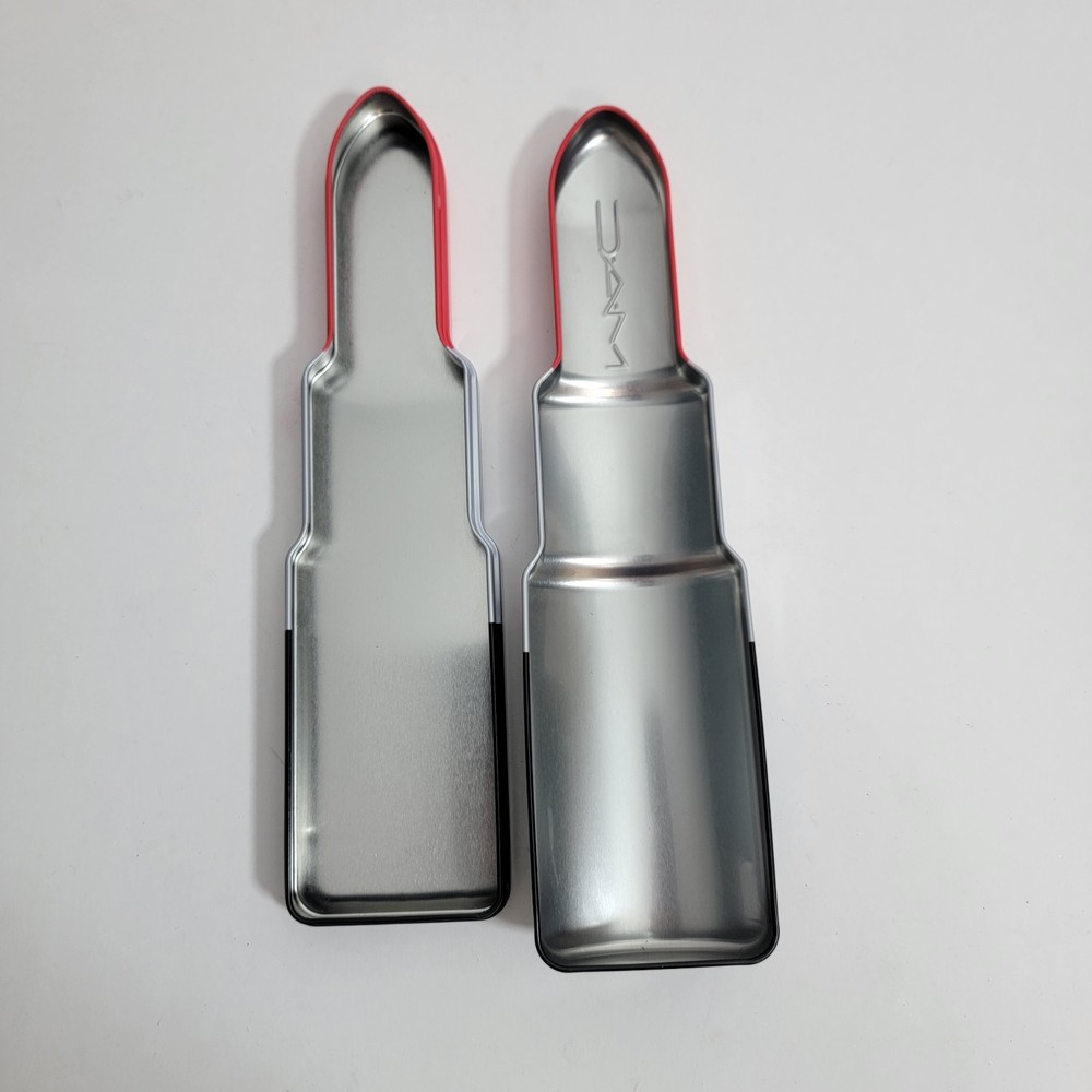 never used. no scratches. metal tin lipstick . about 11inchs tall