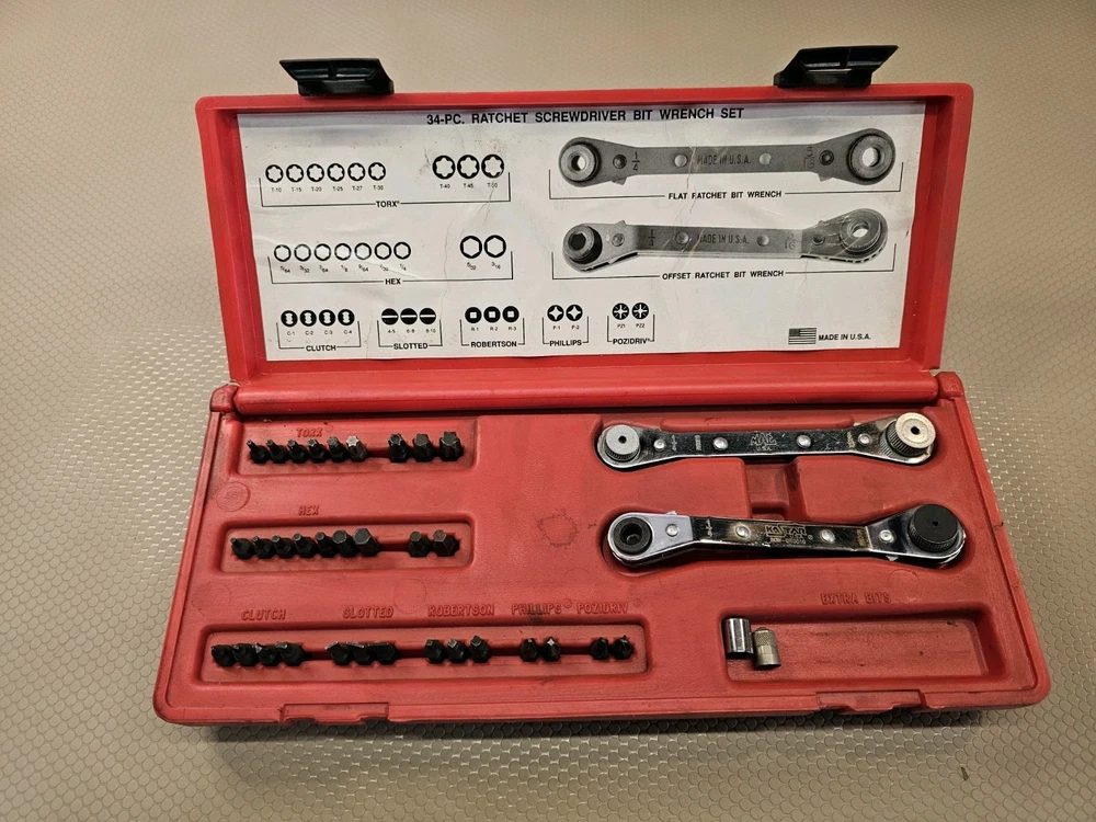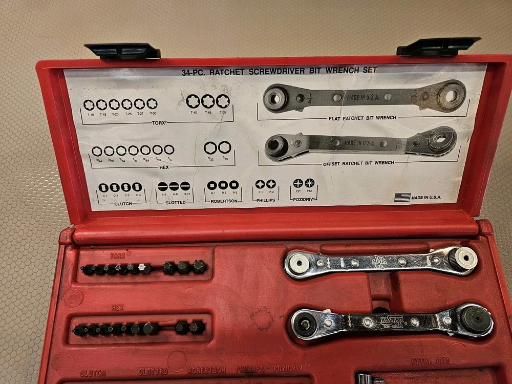 MAC TOOLS 34 piece Ratcheting Screwdriver Bit and Wrench Set USA BWS 34