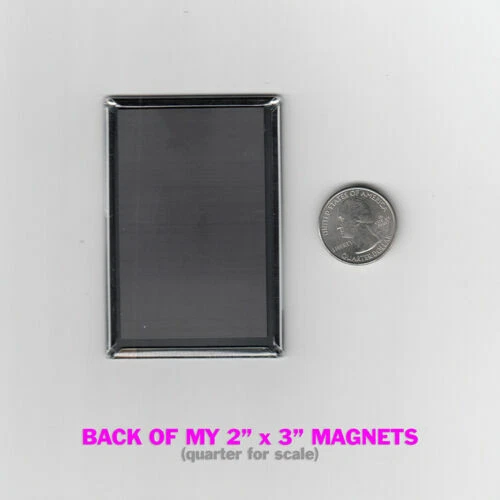 - MAGNET INFO - Each Magnet is roughly 2" x 3" Made of a solid metal base with permanent pin backing and a mylar coating, these heavyweight buttons are of the absolute highest quality. - LISTING PHOTO INFO - eBay.com automatically compresses the quality of the image in this listing, so once your magnets arrive you'll see that they are even better looking in person. Guaranteed or your money back! - SHIPPING INFO - All orders are individually bagged and carefully packed in a bubble wrap lined kraft mailer to insure a safe delivery! Orders are generally shipped via USPS First Class mail with a 2-5 day delivery time within the USA. Most large orders will be shipped via USPS Priority with 1-3 day delivery time within the USA. If you need your order within in a certain time frame, please message me asap and I can make it happen! - SPECIAL ORDERS - If you need a higher quantity that is currently available in this listing, just message me to make arrangements. If you'd like to order anything to resell at your store, fleamarket, or anywhere but ebay, please get in touch for special pricing! PLEASE CHECK MY OTHER LISTINGS FOR MORE BUTTONS & OTHER COOL STUFF!