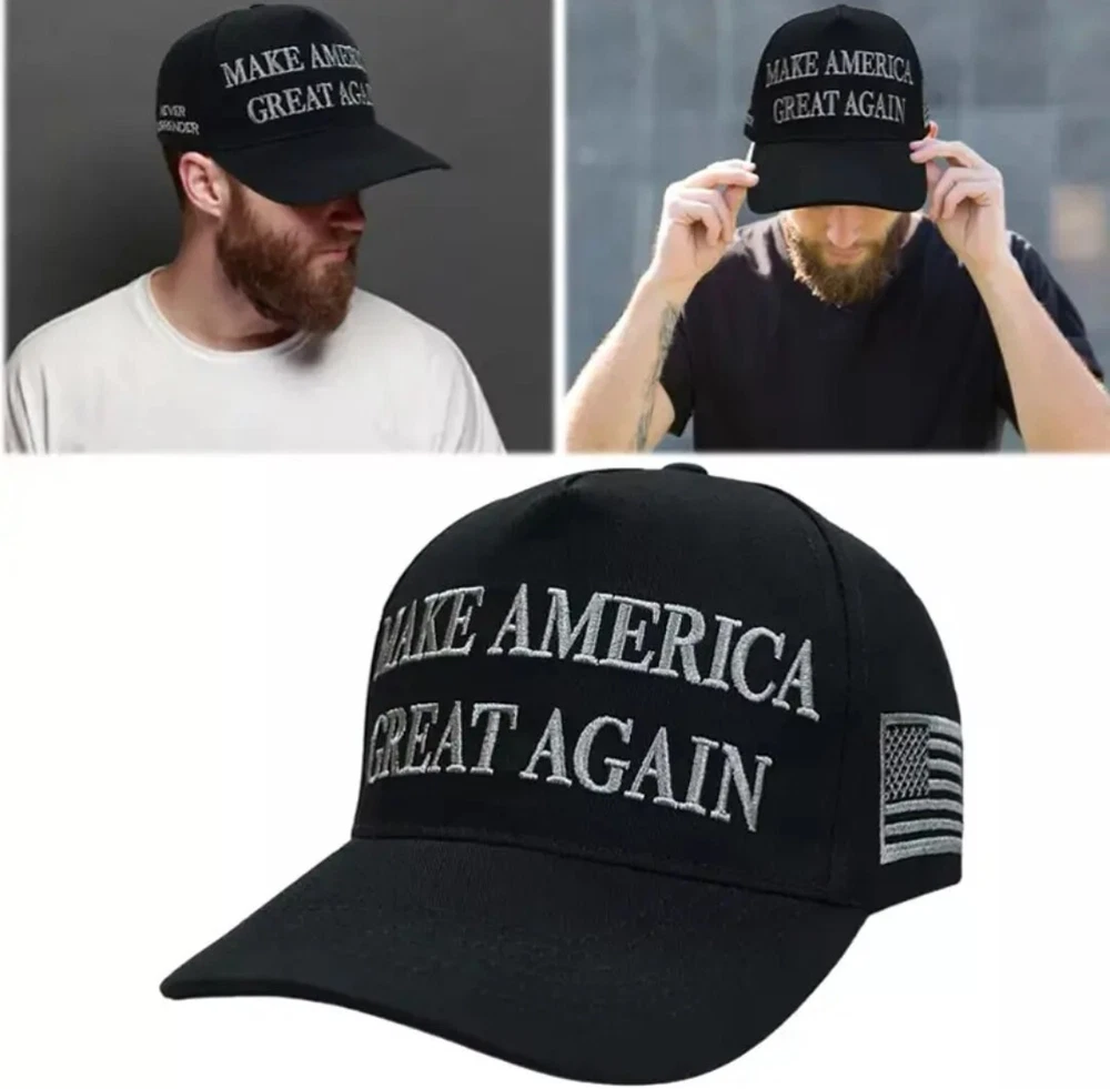 FAST SHIPPING FROM GA USA****'This product is a black baseball cap featuring the phrase "Make America Great Again" (MAGA) on the front, associated with Donald Trump and his 2024 campaign. The cap is designed in a solid style and one size fits all, making it suitable for men. It also incorporates a theme of patriotism with the USA flag, appealing to supporters of Trump and his political ideology. This hat falls under the category of men's accessories, specifically hats, and is a statement piece for those who align with the message of making America great again.