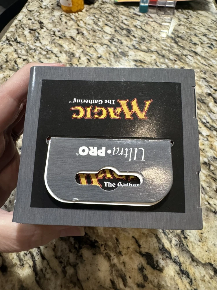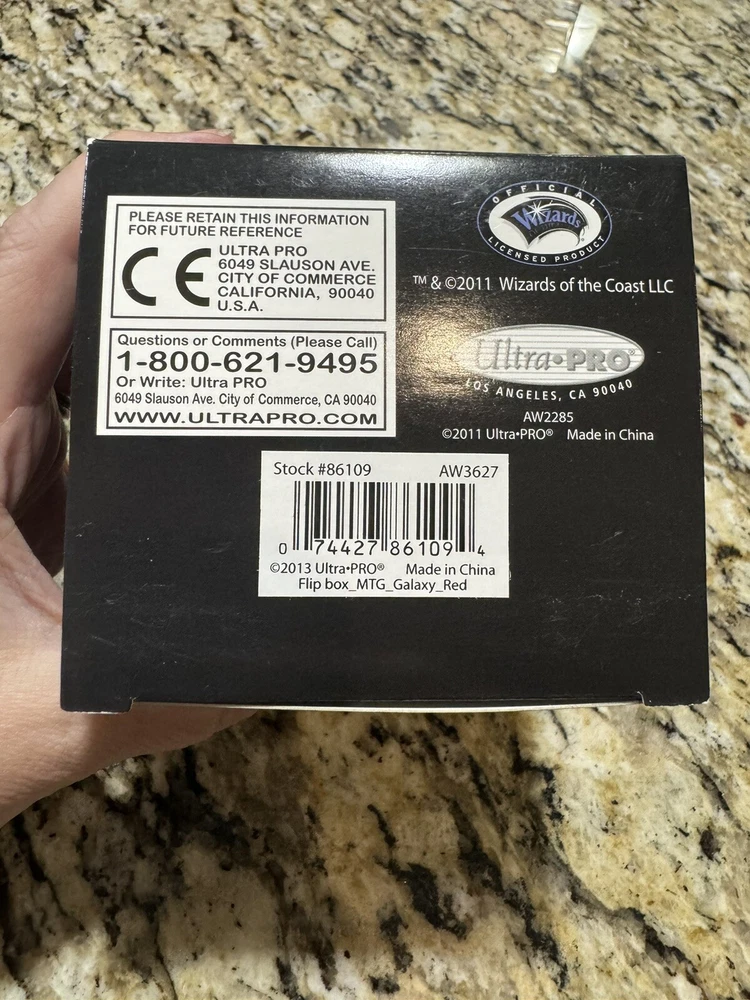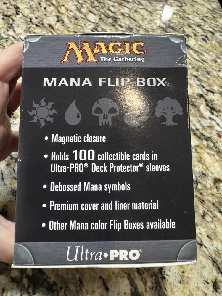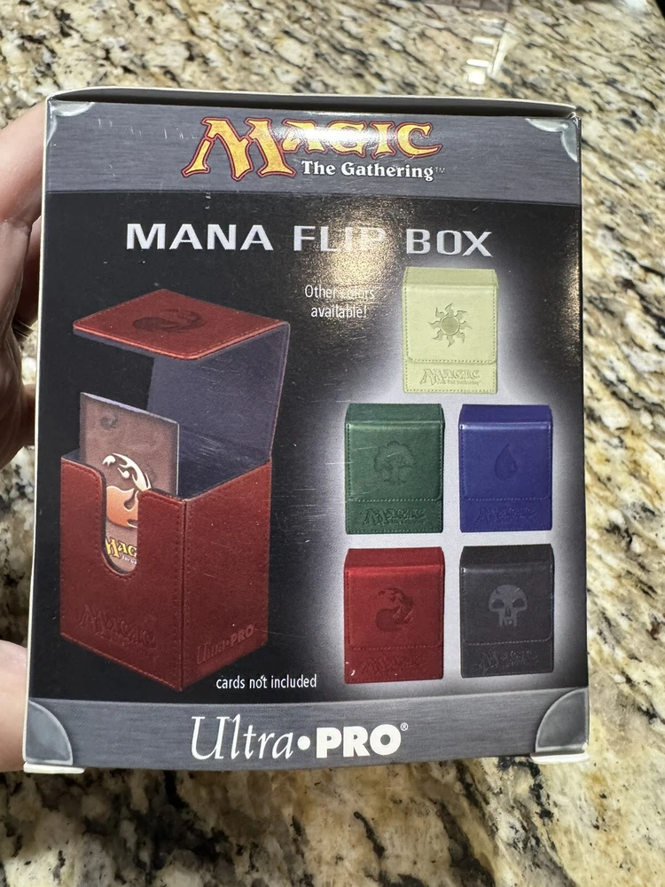 This Ultra PRO deck box is the perfect addition to any Magic: The Gathering collection. The red mana flip design is eye-catching and the faux leather material provides a sleek and sophisticated look. The box is compatible with standard sized cards and is specifically designed for Magic: The Gathering. The box features the character Box and is ideal for storing and organizing your collection. Whether you're a seasoned player or just starting out, this deck box is a must-have for any Magic: The Gathering fan. New in box. Never opened.
