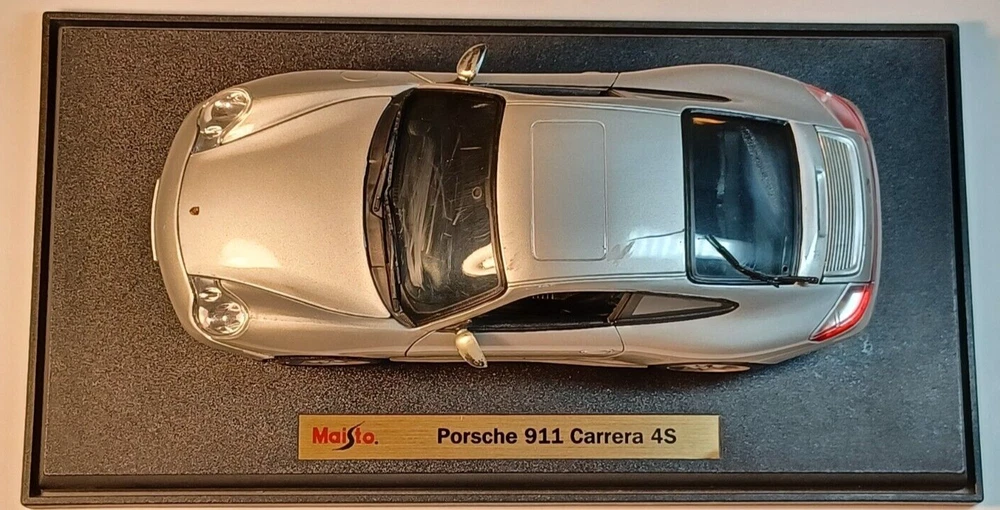 MAISTO - Porsche 911 Carrera 4S - Scale 1/18 - Silver - Diecast Car - Used - No Box. This car has several scratches and mark on the paint. The front and rear windows also have scratches. Die Cast Metal with Plastic Parts. O pening doors Opening Hood Opening Trunk Adjustable Front Wheels Workable Steering This car was stored in a cool place Sold as is, please see photos to see details. From my pet free & smoke free home! This great piece is from my private collection. Will be shipped in one bu siness day after purchase. In a 16x8x8 Cardboard Paper Box Mailing Packing Shipping Box Corrugated Carton, enviro bubble, and peanut pack biodegradable also.