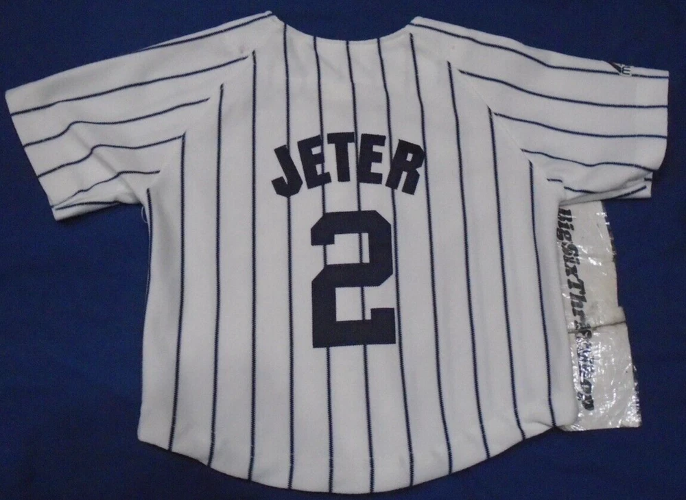 Brand: Majestic UPC: Does not apply Product: Jersey Team: New York Yankees Player: Derek Jeter Country/Region of Manufacture: China Color: Multi-Color Size: 9-12 Months Pre & Post Season: Regular Season Officially Licensed: Yes League: Major League (MLB) Featured Refinements: Vintage Baseball Jersey Modified Item: No Sport: Baseball-MLB Gender: Unisex Children gtin13: Does not apply