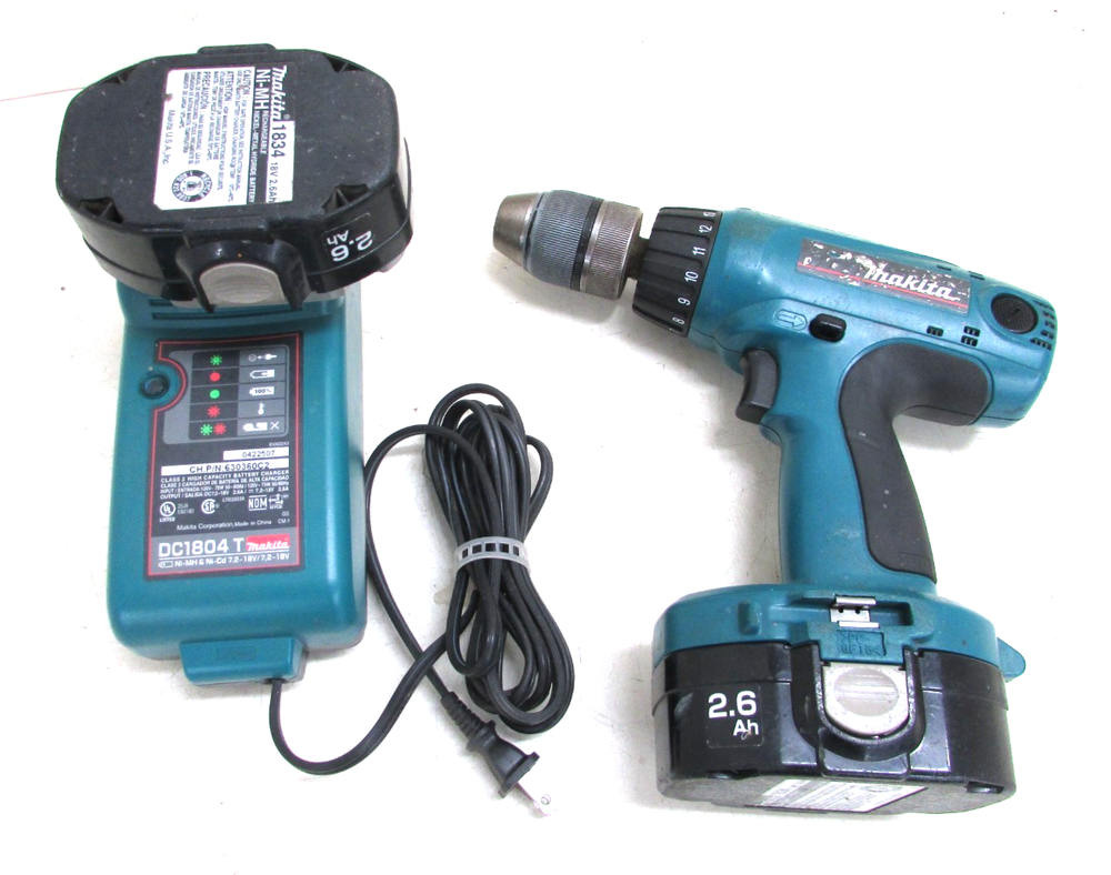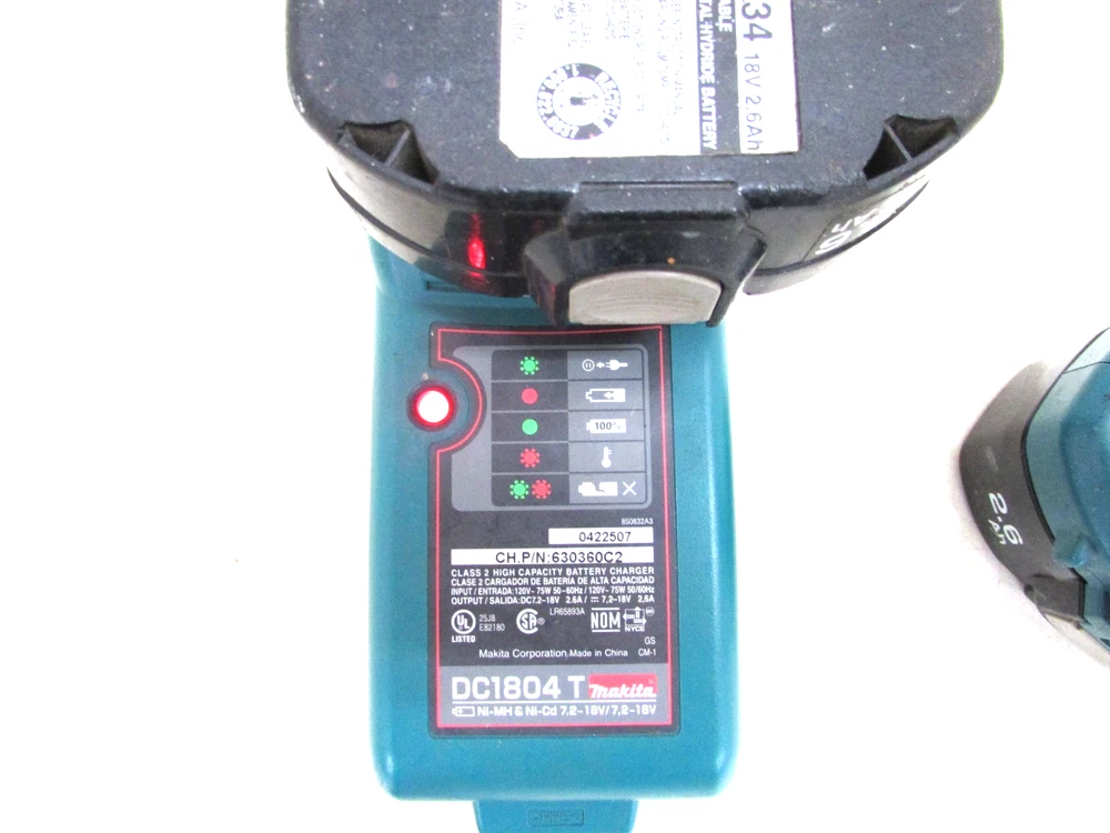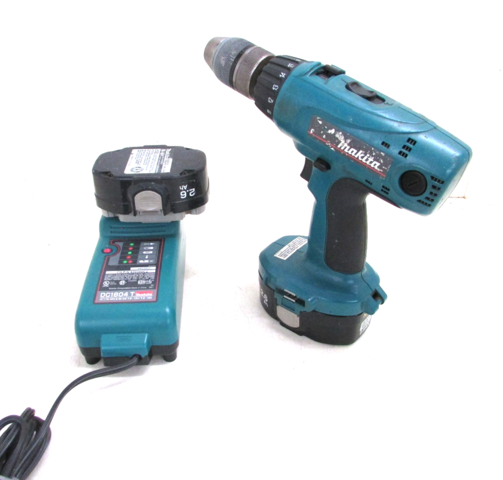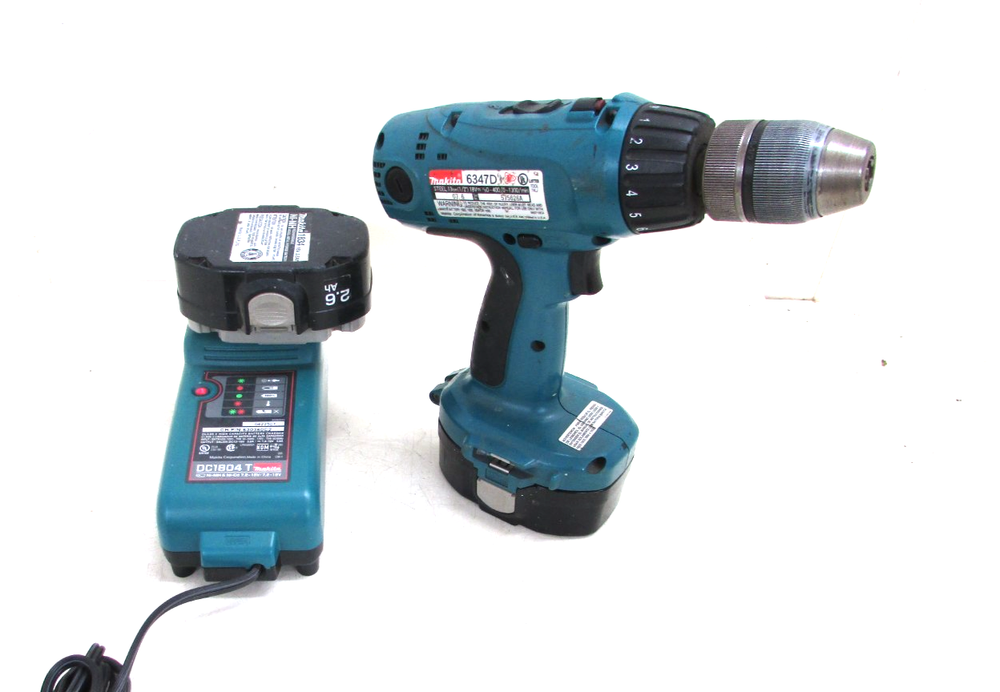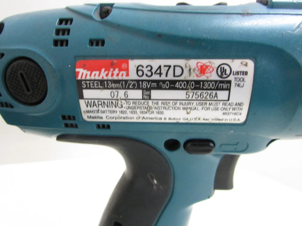 THIS IS A PREVIOUSLY USED ITEM MAKITA 6347D 18V CORDLESS DRILL WITH KEYLESS CHUCK 400 - 1300 RPM INCLUDES: (2) 18V Ni-MH 1834 BATTERIES BATTERY CHARGER, DC1804T BATTERYIES HOLD A CHARGE YOU CAN SEE THE CHARGING LIGHT ON IN THE PHOTOS CHARGING THE BATTERY COMES JUST AS PICTURED GOOD WORKING CONDITION! WE ALWAYS HAVE SEVERAL LISTINGS WITH QUALITY NAME BRAND TOOLS...CHECK THEM OUT! 46-C