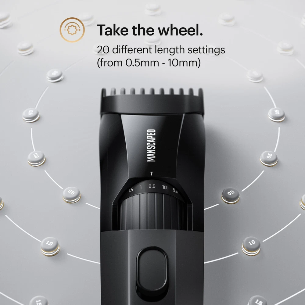 The Beard Hedger™ is a premium precision men's beard trimmer with enough power to craft your style in a single swipe. It is designed with a unique cutting angle to have its built-in comb lift flat-lying hairs for smooth trimming. Our intuitive zoom wheel helps you choose from 20 different length settings (10mm max length) so you can craft your perfect beard style. The Beard Hedger™ includes a USB-C cable, length-setting comb, and a travel case. THE BEARD HEDGER™: Our precision beard groomer comes equipped with an intuitive zoom wheel with 20 different lengths (.5mm increments up to 10mm max. length) to choose from so you can ditch the dozen clipper attachments and trim anything from a lumberjack ‘stache to stubble. ONE STROKE WONDER: our men's trimmer was designed with a unique cutting angle to have its built-in comb lift flat-lying hairs for smooth, single-stroke trimming. CHECK YOUR HEDGE: With a powerful, cordless DC motor and 41mm titanium-coated t-blade, The Beard Hedger is sharp enough to cut through the thickest facial hair with ease and no blade oil needed. TAME YOUR MANE: Built for men looking to take their beard maintenance routine to the next level, our trimmer is waterproof*, has a 7,200 RPM motor and high-performance battery for 60 minutes of use in the shower or on the go. *IPX7 rated to protect against immersion in up to one meter of fresh water for up to 30 minutes. WHAT’S INCLUDED: The Beard Hedger comes with a USB-C cable, AC adapter, length-setting comb attachment and a hard shell water resistant travel case for on the go trimming.